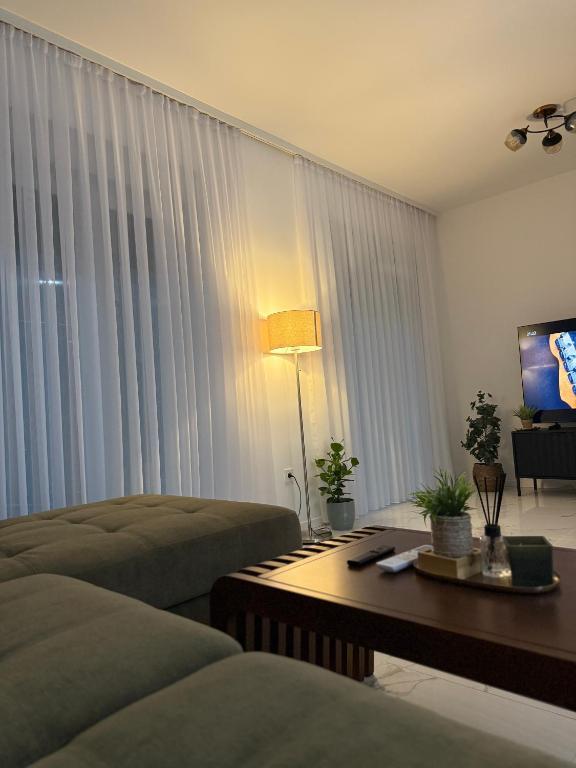 Üdvözöljük a Dukat Apartmanban, egy modern apartmanban, egy új épületben, Vinkovci központjában! Ez az elegánsan berendezett földszinti lakás (lépcső nélkül) ideális családok, párok vagy üzleti utazók számára. Az apartmanhoz saját parkolóhely tartozik az udvarban, és egy tágas terasz (18 m2) is tartozik a pihenéshez. Teljesen felszerelt, hogy tartózkodása kellemes legyen.