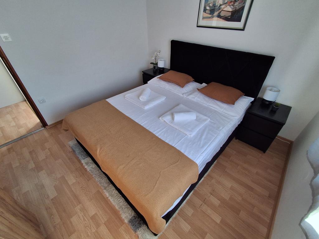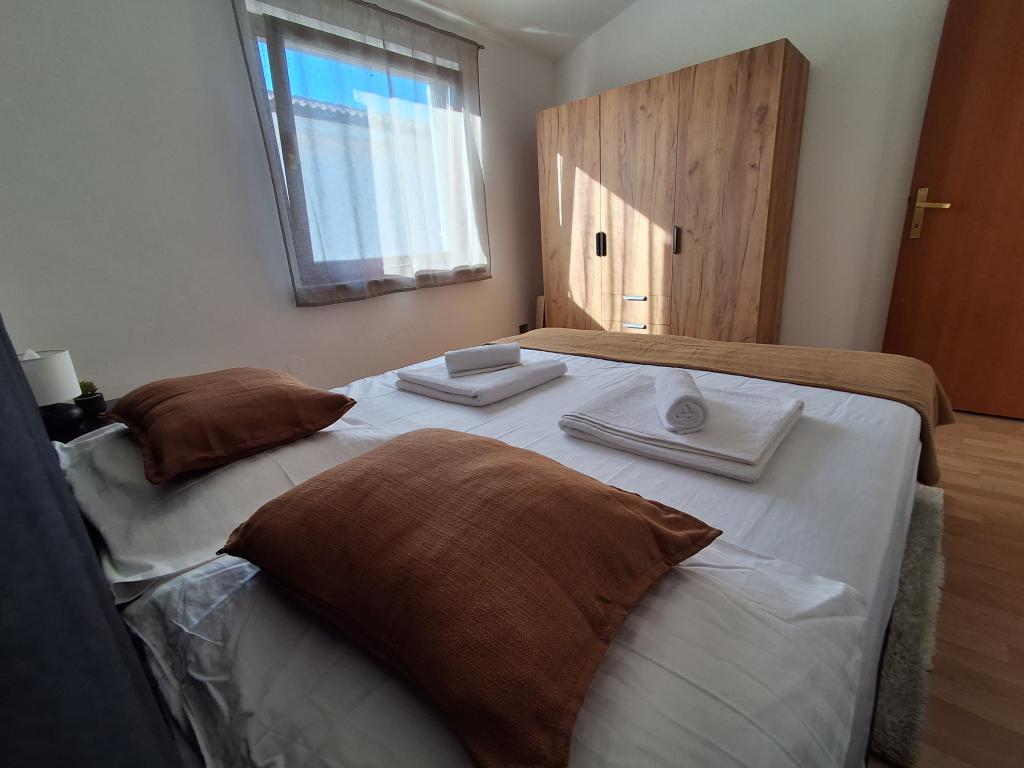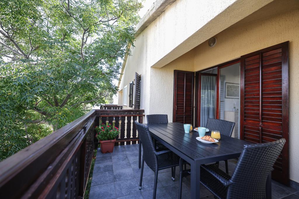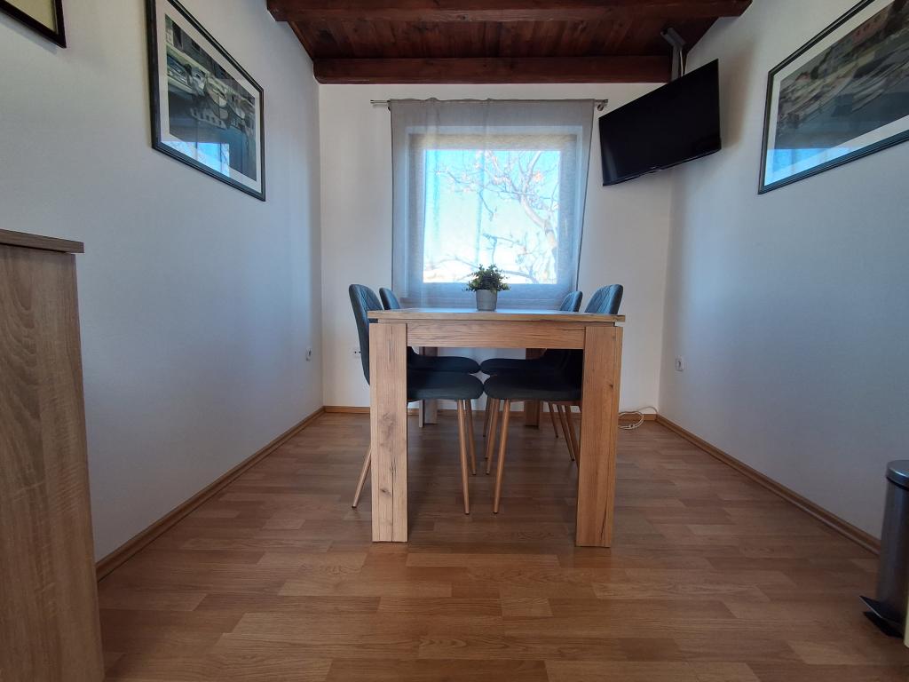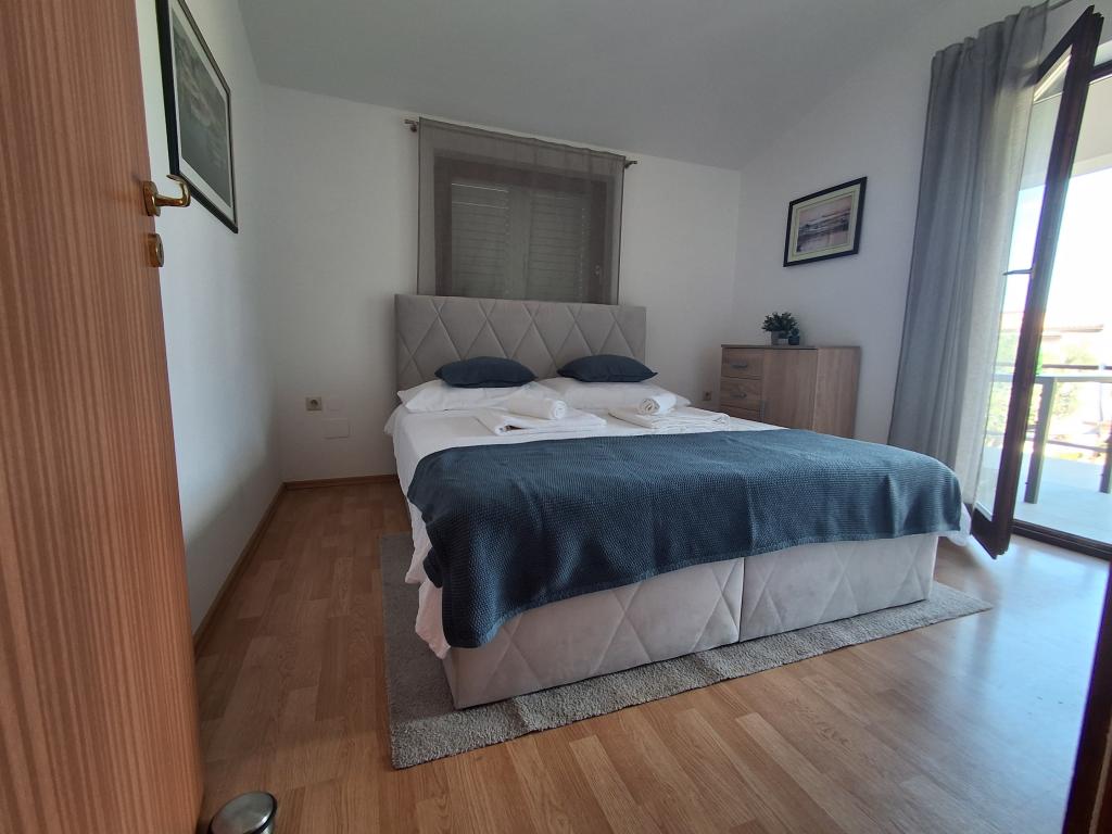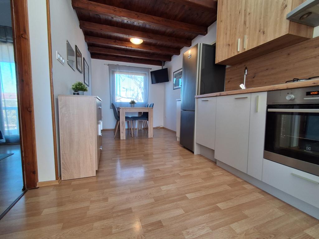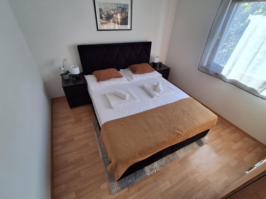 Szép és modern berendezésű négyszemélyes apartman Vir szigetén, ideális családi nyaraláshoz. Néhány percre található a gyerekeknek megfelelő strandtól, a központtól, ahol egy tengerparti sétány van, a postától, a templomtól, a közvetlen közelében lévő buszpályaudvartól és az üzlettől. A lakás 50 m2 alapterületű, külön bejárattal rendelkezik. Az ár tartalmazza a parkolóhelyet, az egész lakásban klímaberendezést, grillezőt, nyári zuhanyzót az udvaron. Két hálószoba, zuhanyzós fürdőszoba, konyha étkezővel és terasz található. Vir szigetének csendes részén található, mégis minden elérhető közelségben, ideális egy ideális nyaraláshoz.