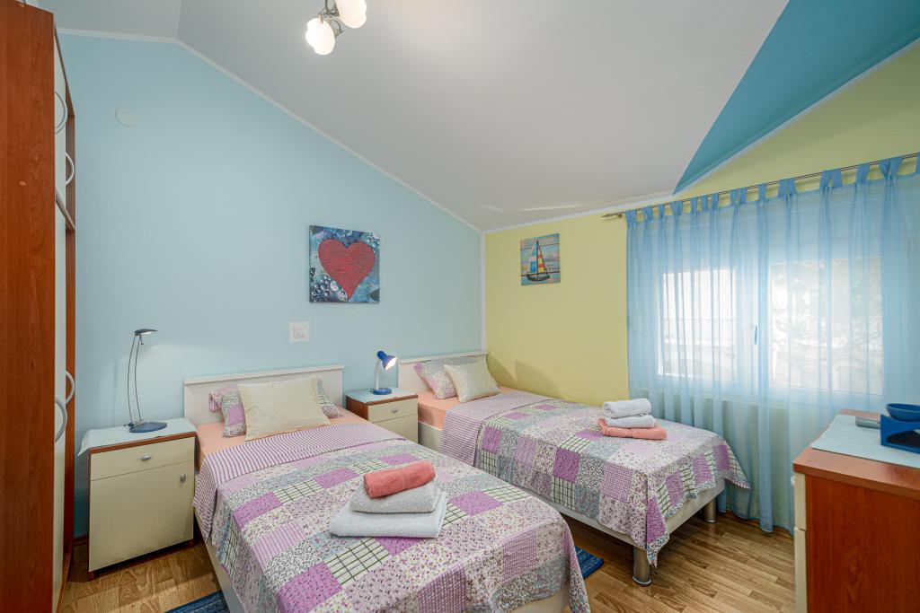 Az Apartment Lela az első emeleten található. Az apartman két hálószobával, két fürdőszobával, nagy nappalival, konyhával és étkezővel, valamint egy nagy terasszal rendelkezik. A strand 100 méterre van az apartmantól, bolt szintén 100 méterre található. A tengerparton van egy gyorsétterem és egy kávézó. Az utca csendes, a forgalom csak az utcán lakók számára szól. Az apartmanhoz saját parkolóhely tartozik az udvarban, grill és saját nagy terasz.A strand beton kavicsos, 200 méterre pedig egy öböl homokos stranddal. A bolt és a pékség 100 méterre található az apartmantól. Az apartman városi vízzel, légkondicionálóval és ingyenes internet-hozzáféréssel rendelkezik. Szervezett kirándulások a Vir turisztikai irodán keresztül a Krka-vízesésekig, a Kornati, a Plitvicei-tavakig és más érdekes célpontokig. Kerékpár, motorcsónak és csónakkölcsönző, búváriskola. Szeretnénk, ha jól érezné magát a házában lévő lakásában, és hogy Vir-i tartózkodása megmaradna kedves emlékeiben :) Várjuk érkezését