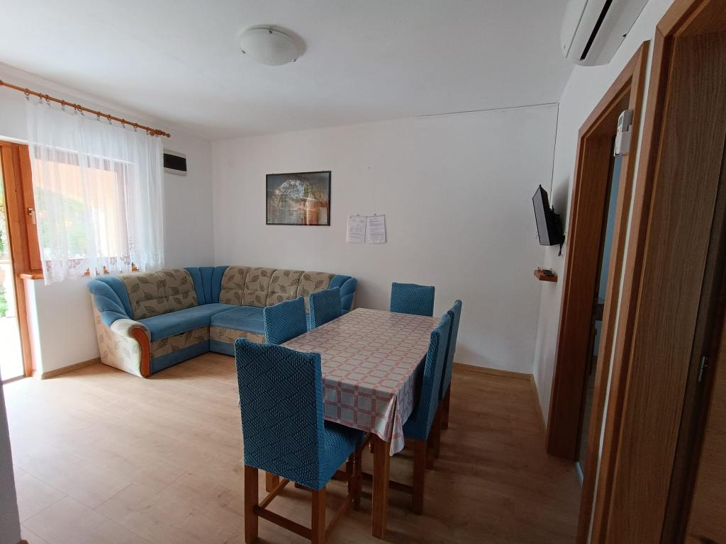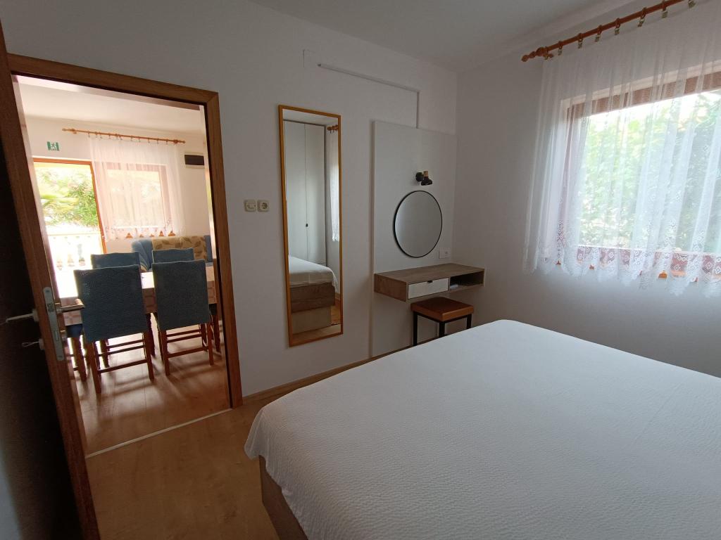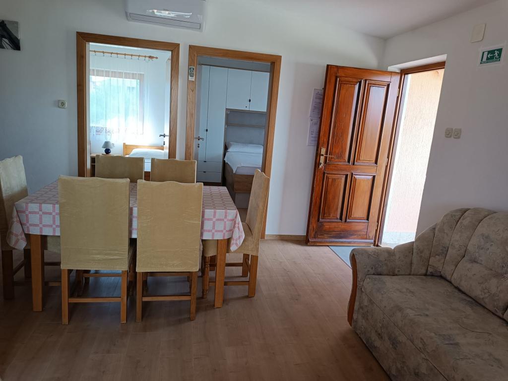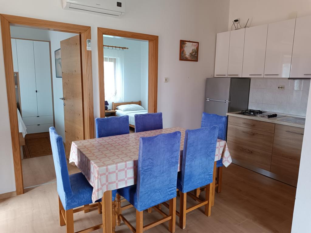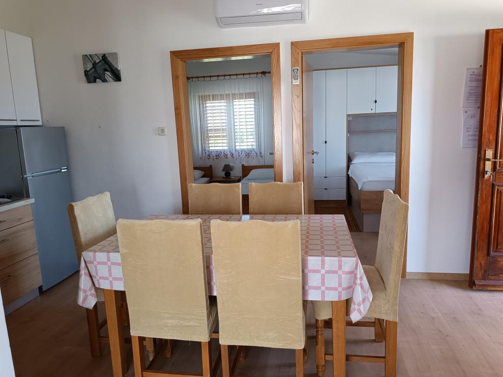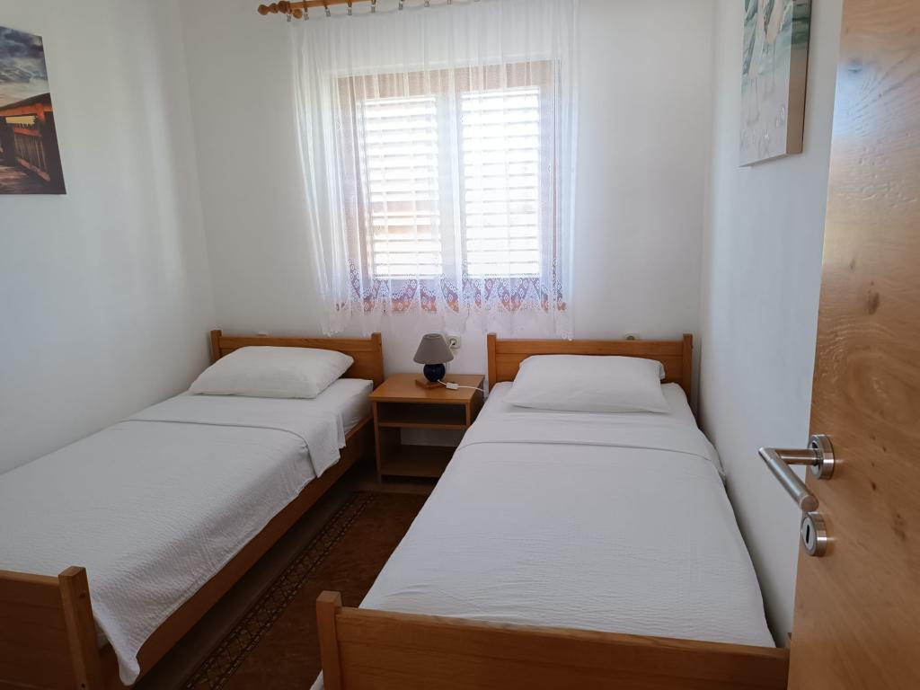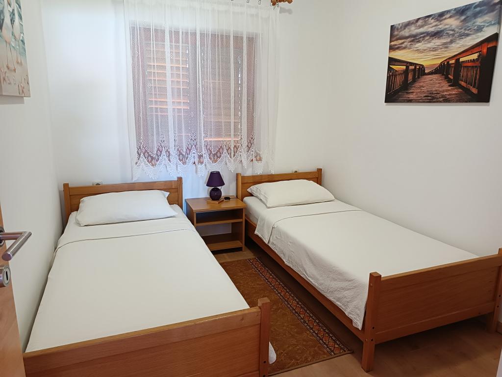 Három egyforma nagyobb, 4 fős, légkondicionált apartmant és egy kisebb, két fős apartmant bérelünk. Egy nagyobb a földszinten balra, kettő pedig az első emeleten található. A kisebbik jobb oldalon a földszinten található. A nagyobb apartmanokban két hálószoba és egy nappali, míg a kisebb apartmanokban egy hálószoba és egy nappali található. Minden apartman külön bejárattal és 12 négyzetméteres terasszal rendelkezik. Az apartmanokban minden ágyneműt és edényt kap a főzéshez és az ételek és italok felszolgálásához. Kérjük a vendégeket, hogy hozzák magukkal a mosogatáshoz és törléshez szükséges eszközöket, valamint törölközőt a fürdőszobához és mindent, ami a személyes higiéniához szükséges. A legközelebbi strand (Žitna uvala) 100 m-re található A strandon kívül kavicsos, a vízben homokos. Gyermekek számára alkalmas. A strand mentén hosszú sétány és kerékpárút vezet. A strandon több étterem és egy fagylaltozó is található. 150-250 méteres körzetében gyümölcsbolt, pékség, több élelmiszerbolt, strandfelszereléssel ellátott üzletek találhatók. Az utcánk nem forgalmas. Csak bérlői és vendégei használják. Aszfaltozott, közvilágítással rendelkezik.