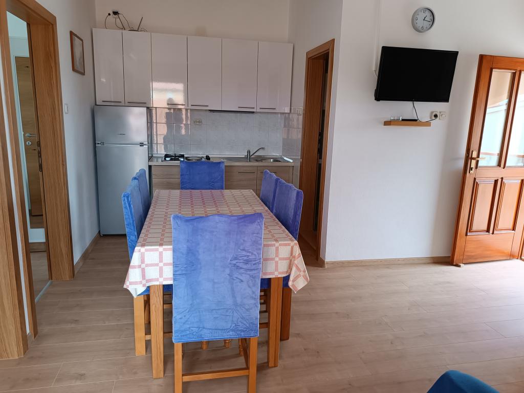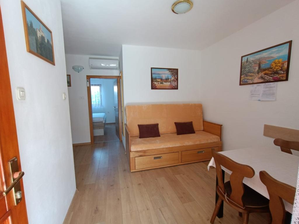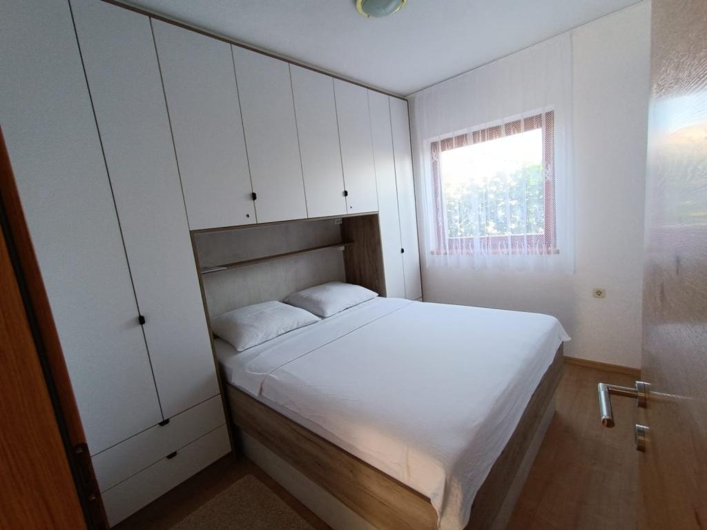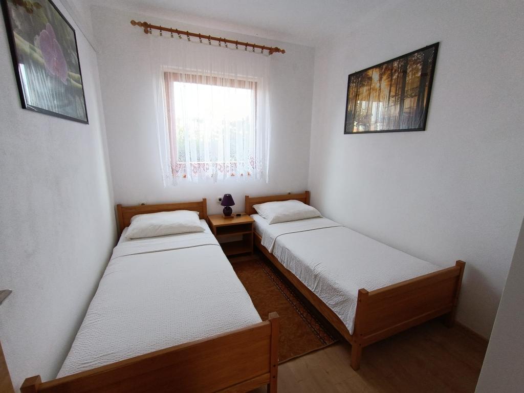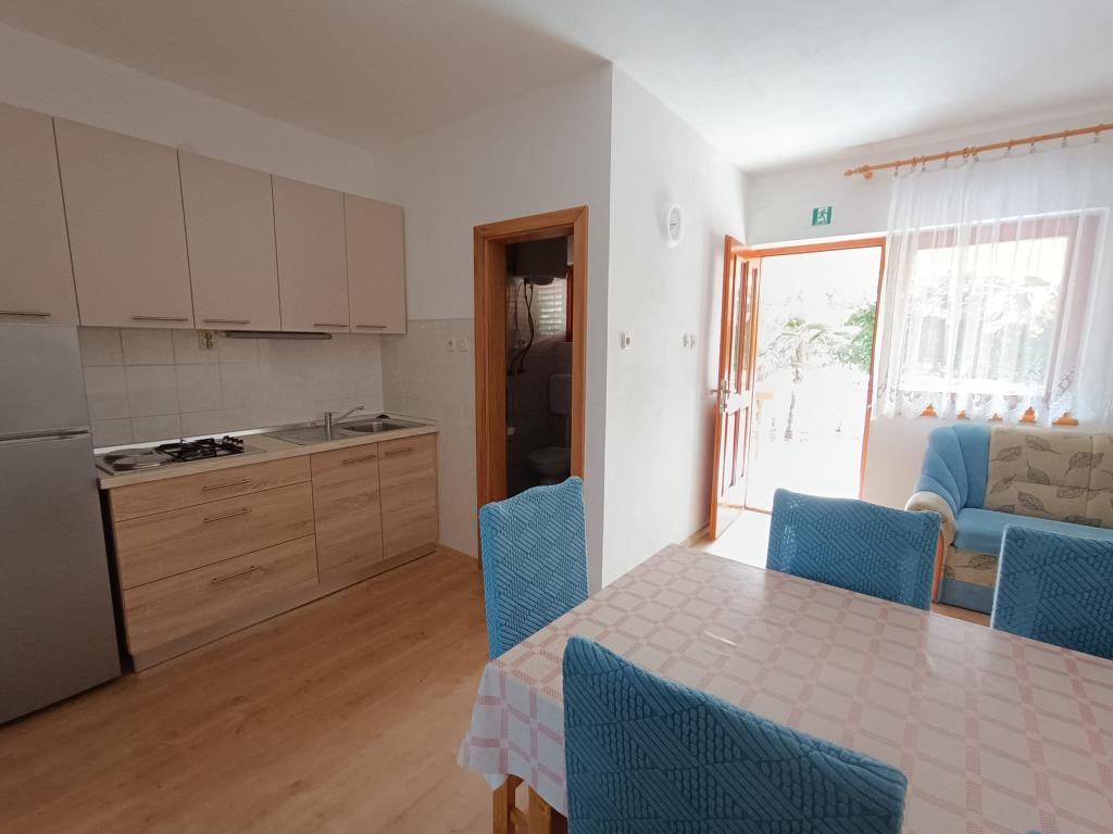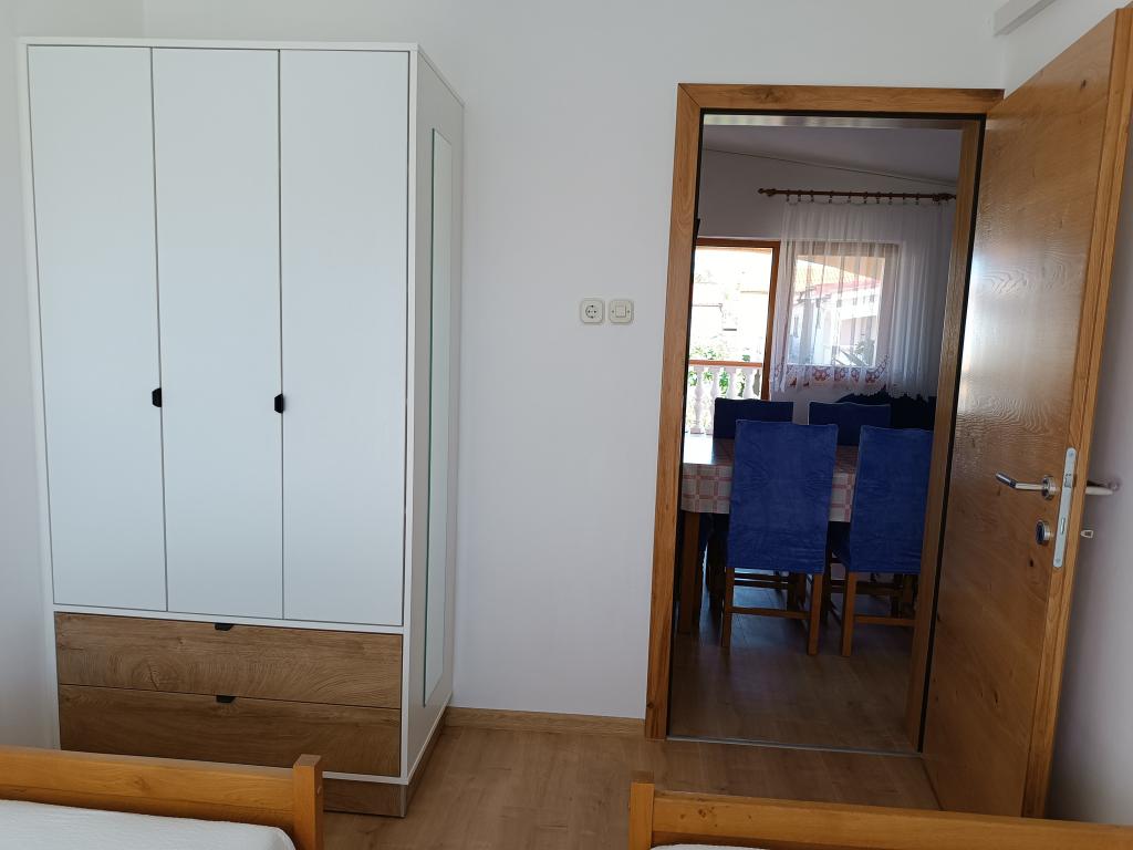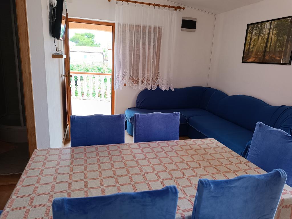 Három egyforma nagyobb, 4 fős, légkondicionált apartmant és egy kisebb, két fős apartmant bérelünk. Egy nagyobb a földszinten balra, kettő pedig az első emeleten található. A kisebbik jobb oldalon a földszinten található. A nagyobb apartmanokban két hálószoba és egy nappali, míg a kisebb apartmanokban egy hálószoba és egy nappali található. Minden apartman külön bejárattal és 12 négyzetméteres terasszal rendelkezik. Az apartmanokban minden ágyneműt és edényt kap a főzéshez és az ételek és italok felszolgálásához. Kérjük a vendégeket, hogy hozzák magukkal a mosogatáshoz és törléshez szükséges eszközöket, valamint törölközőt a fürdőszobához és mindent, ami a személyes higiéniához szükséges. A legközelebbi strand (Žitna uvala) 100 m-re található A strandon kívül kavicsos, a vízben homokos. Gyermekek számára alkalmas. A strand mentén hosszú sétány és kerékpárút vezet. A strandon több étterem és egy fagylaltozó is található. 150-250 méteres körzetében gyümölcsbolt, pékség, több élelmiszerbolt, strandfelszereléssel ellátott üzletek találhatók. Az utcánk nem forgalmas. Csak bérlői és vendégei használják. Aszfaltozott, közvilágítással rendelkezik.