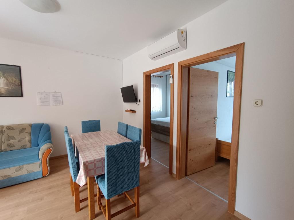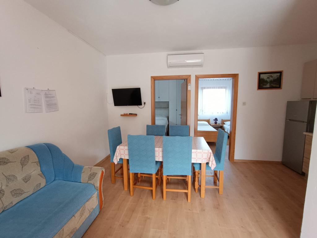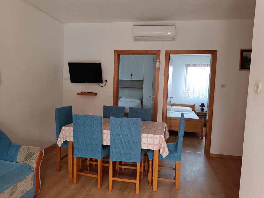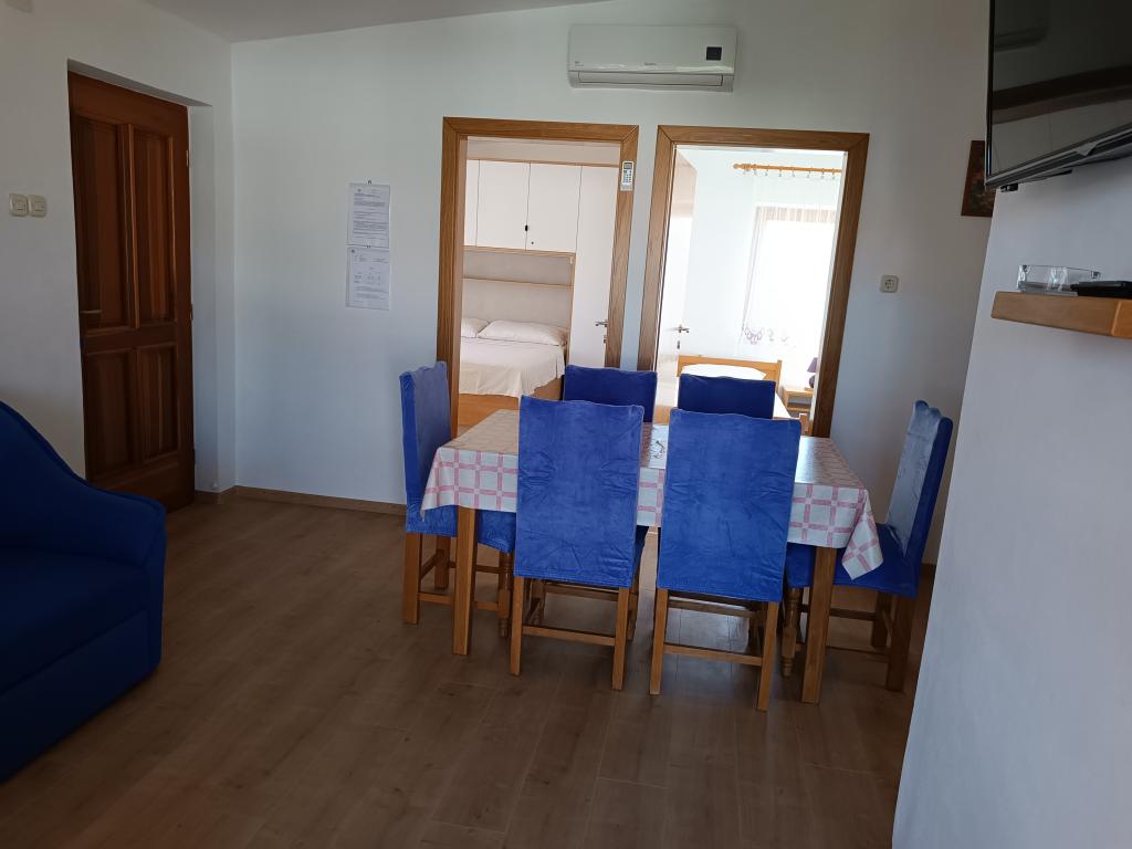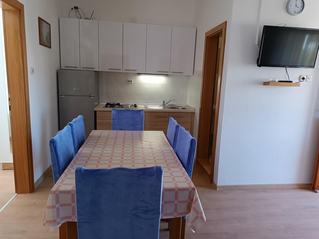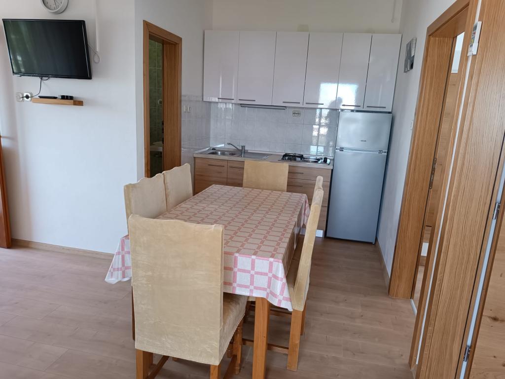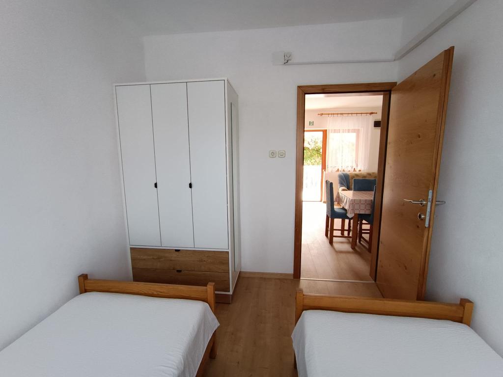 Három egyforma nagyobb, 4 fős, légkondicionált apartmant és egy kisebb, két fős apartmant bérelünk. Egy nagyobb a földszinten balra, kettő pedig az első emeleten található. A kisebbik jobb oldalon a földszinten található. A nagyobb apartmanokban két hálószoba és egy nappali, míg a kisebb apartmanokban egy hálószoba és egy nappali található. Minden apartman külön bejárattal és 12 négyzetméteres terasszal rendelkezik. Az apartmanokban minden ágyneműt és edényt kap a főzéshez és az ételek és italok felszolgálásához. Kérjük a vendégeket, hogy hozzák magukkal a mosogatáshoz és törléshez szükséges eszközöket, valamint törölközőt a fürdőszobához és mindent, ami a személyes higiéniához szükséges. A legközelebbi strand (Žitna uvala) 100 m-re található A strandon kívül kavicsos, a vízben homokos. Gyermekek számára alkalmas. A strand mentén hosszú sétány és kerékpárút vezet. A strandon több étterem és egy fagylaltozó is található. 150-250 méteres körzetében gyümölcsbolt, pékség, több élelmiszerbolt, strandfelszereléssel ellátott üzletek találhatók. Az utcánk nem forgalmas. Csak bérlői és vendégei használják. Aszfaltozott, közvilágítással rendelkezik.