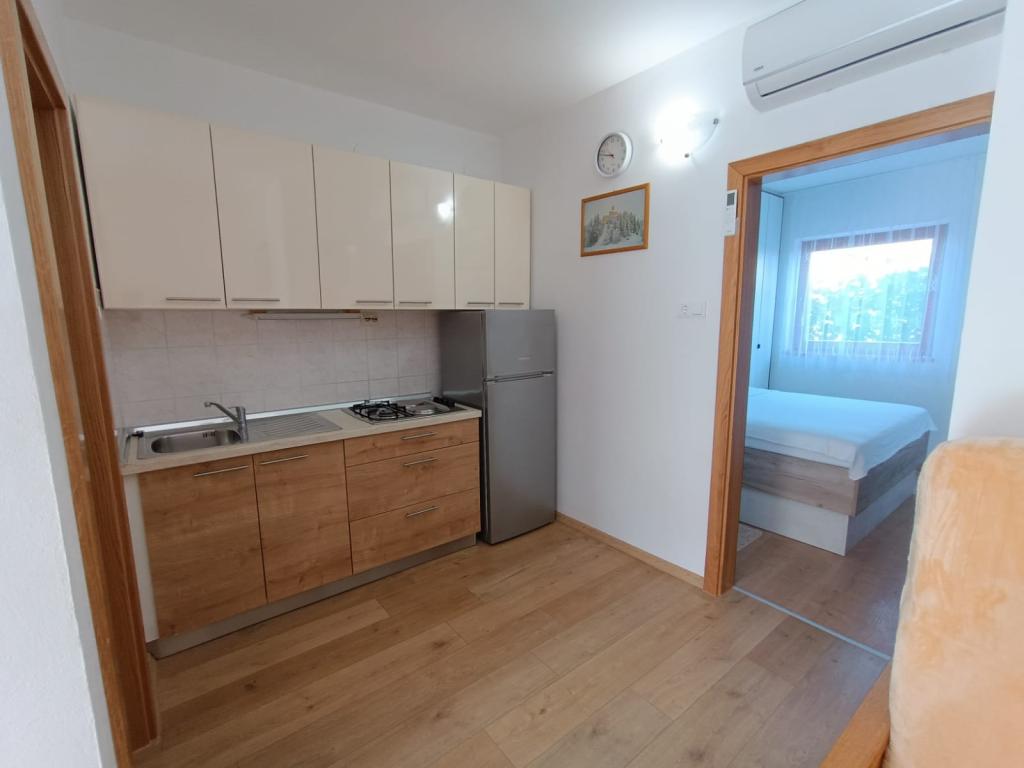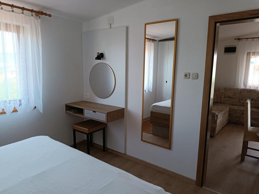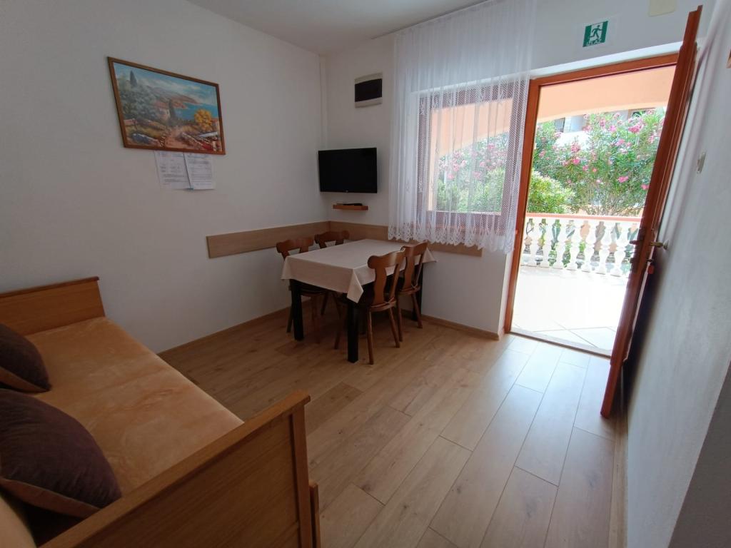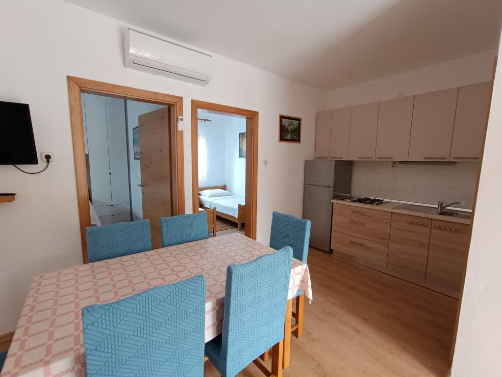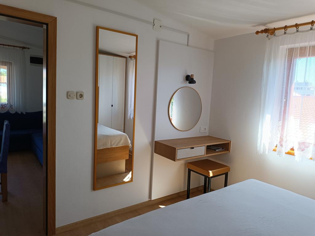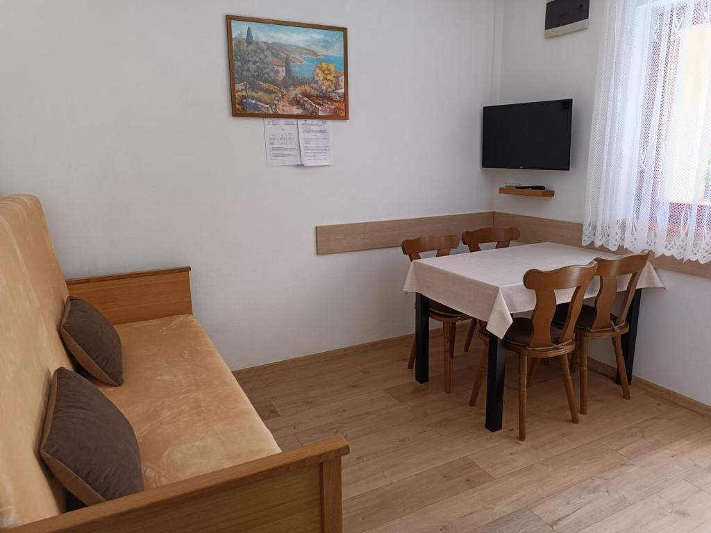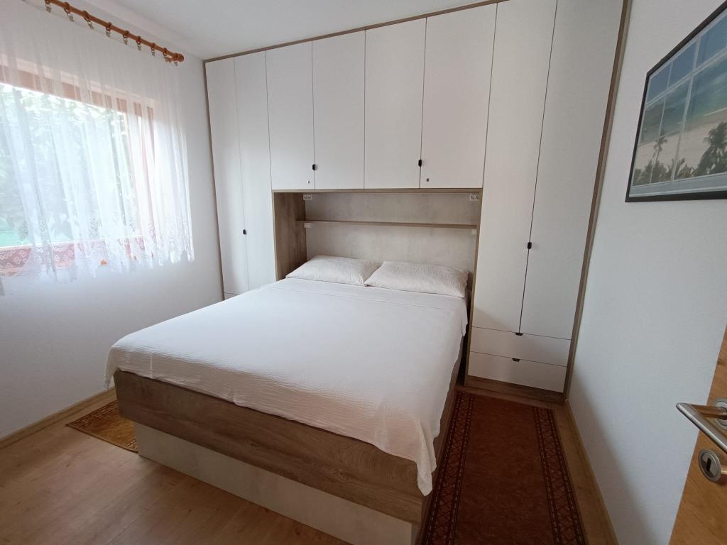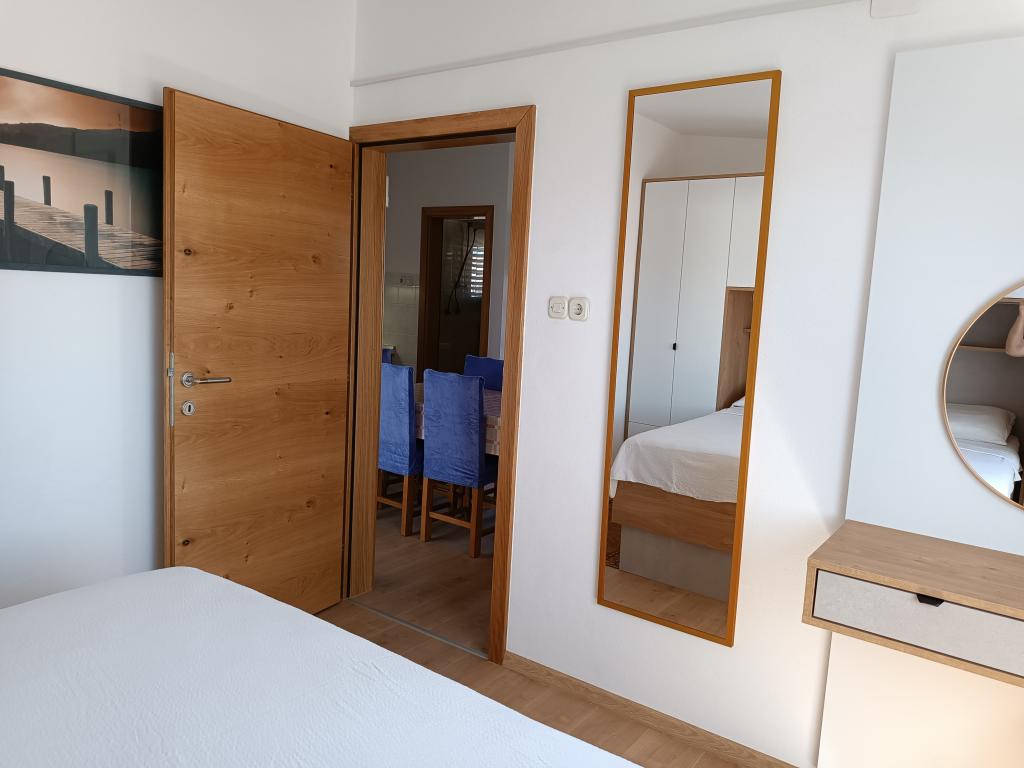 Három egyforma nagyobb, 4 fős, légkondicionált apartmant és egy kisebb, két fős apartmant bérelünk. Egy nagyobb a földszinten balra, kettő pedig az első emeleten található. A kisebbik jobb oldalon a földszinten található. A nagyobb apartmanokban két hálószoba és egy nappali, míg a kisebb apartmanokban egy hálószoba és egy nappali található. Minden apartman külön bejárattal és 12 négyzetméteres terasszal rendelkezik. Az apartmanokban minden ágyneműt és edényt kap a főzéshez és az ételek és italok felszolgálásához. Kérjük a vendégeket, hogy hozzák magukkal a mosogatáshoz és törléshez szükséges eszközöket, valamint törölközőt a fürdőszobához és mindent, ami a személyes higiéniához szükséges. A legközelebbi strand (Žitna uvala) 100 m-re található A strandon kívül kavicsos, a vízben homokos. Gyermekek számára alkalmas. A strand mentén hosszú sétány és kerékpárút vezet. A strandon több étterem és egy fagylaltozó is található. 150-250 méteres körzetében gyümölcsbolt, pékség, több élelmiszerbolt, strandfelszereléssel ellátott üzletek találhatók. Az utcánk nem forgalmas. Csak bérlői és vendégei használják. Aszfaltozott, közvilágítással rendelkezik.