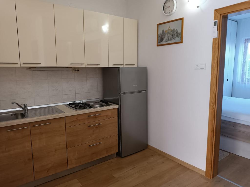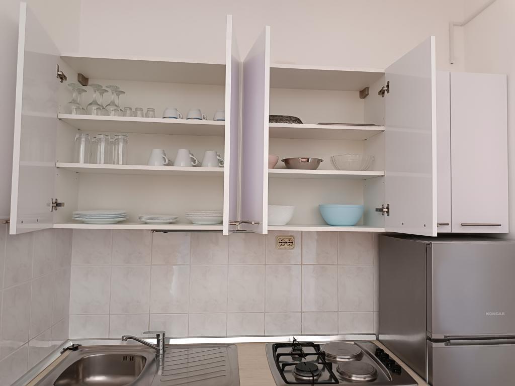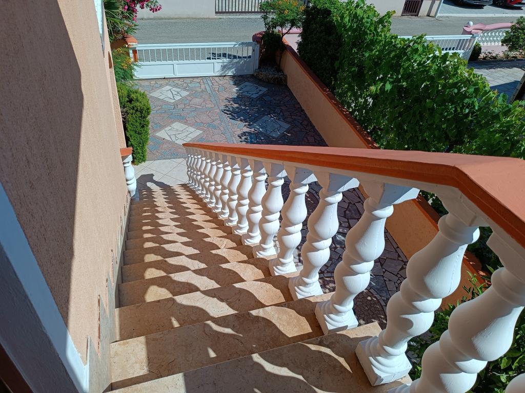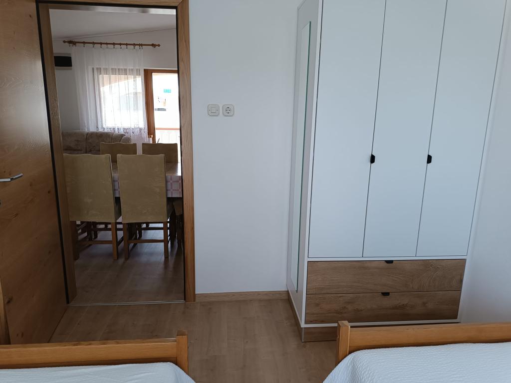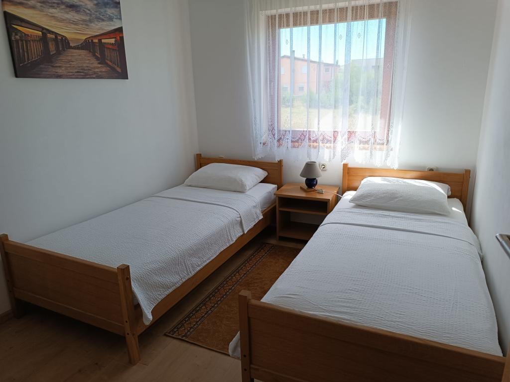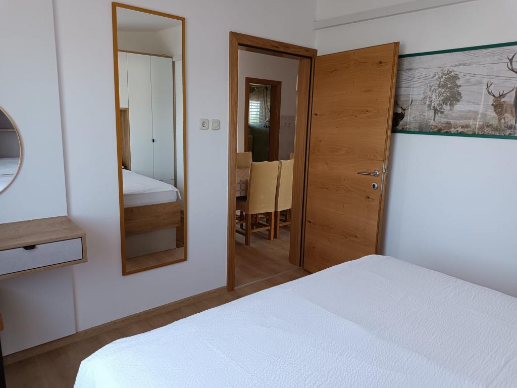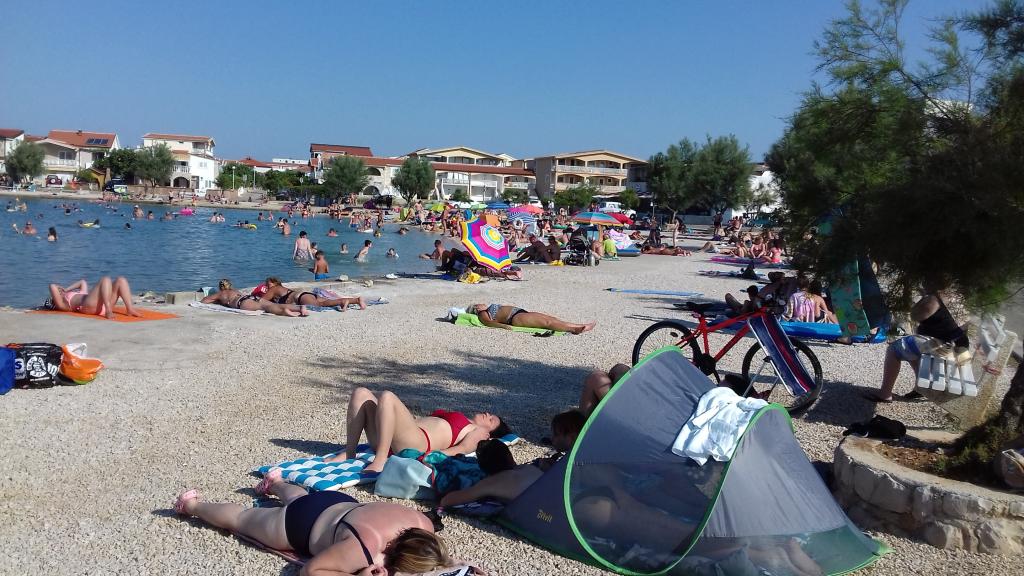 Három egyforma nagyobb, 4 fős, légkondicionált apartmant és egy kisebb, két fős apartmant bérelünk. Egy nagyobb a földszinten balra, kettő pedig az első emeleten található. A kisebbik jobb oldalon a földszinten található. A nagyobb apartmanokban két hálószoba és egy nappali, míg a kisebb apartmanokban egy hálószoba és egy nappali található. Minden apartman külön bejárattal és 12 négyzetméteres terasszal rendelkezik. Az apartmanokban minden ágyneműt és edényt kap a főzéshez és az ételek és italok felszolgálásához. Kérjük a vendégeket, hogy hozzák magukkal a mosogatáshoz és törléshez szükséges eszközöket, valamint törölközőt a fürdőszobához és mindent, ami a személyes higiéniához szükséges. A legközelebbi strand (Žitna uvala) 100 m-re található A strandon kívül kavicsos, a vízben homokos. Gyermekek számára alkalmas. A strand mentén hosszú sétány és kerékpárút vezet. A strandon több étterem és egy fagylaltozó is található. 150-250 méteres körzetében gyümölcsbolt, pékség, több élelmiszerbolt, strandfelszereléssel ellátott üzletek találhatók. Az utcánk nem forgalmas. Csak bérlői és vendégei használják. Aszfaltozott, közvilágítással rendelkezik.