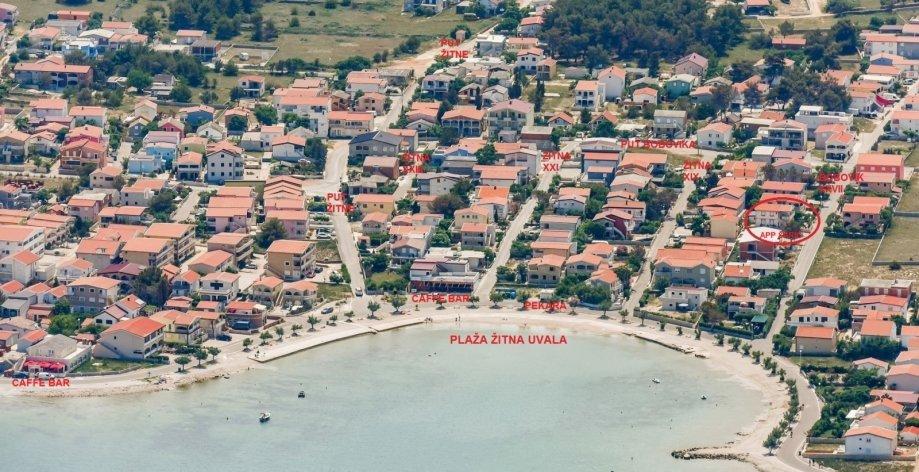 A házban három apartman található. Kettőben két hálószoba, egy nappali, egy konyha, egy fürdőszoba és egy nagy fedett terasz található. Mindegyikben egy franciaággyal felszerelt szoba, a másikban pedig két egyszemélyes ágy található. A harmadik apartmanban egy hálószoba franciaággyal, konyha, fürdőszoba és egy nagy fedett terasz található. Minden szobában van ágynemű. A konyhákban főzéshez és felszolgáláshoz szükséges edények, valamint mikrohullámú sütő és vízforraló található. Minden apartman légkondicionált, melyet az ár tartalmazza. Minden apartman külön bejárattal rendelkezik. A házon belül van egy parkoló, amely minden vendég rendelkezésére áll. Grillező is használható. A Žitna uvala strand 80 méterre található. A strand kavicsos, a tenger homokos. A strand mentén sétány és kerékpárút, valamint számos kávézó, étterem, cukrászda és pékség található. 100 méteren belül több üzlet is található. Vir központja 1800 méterre található.