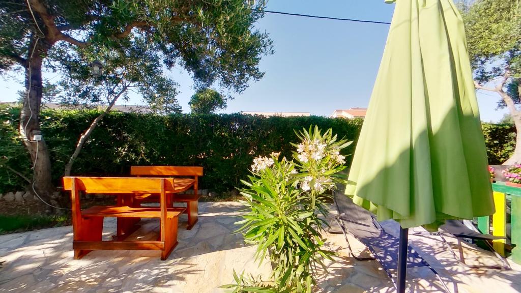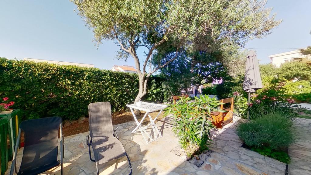 Teljesen berendezett földszinti apartman. Az apartman előtt 40 m2-es kőterasz található, zöldövezetben. Parkolás és grillezési lehetőség az épület udvarán. 250 méteres körzetben minden megtalálható, ami egy kellemes tartózkodáshoz szükséges: strand, központ, piac, étterem.