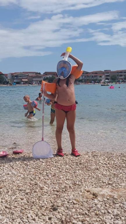 Kiadó egy újonnan felújított, kétszobás, légkondicionált, teljesen felszerelt apartman, maximum 4 fős család számára. Két hálószobával, nappalival, műholdas TV-vel, okos/Wifi-vel. Teljesen felszerelt konyha edényekkel. Zuhanyzós fürdőszoba. Kültéri, beltéri zuhanyzó. Az apartmanhoz egy nagy terasz/erkély tartozik, ahol késő délutánig élvezheti a kellemes árnyékot, ingyenes parkolóhely az autójának. (kérésre, mosodai szolgáltatás szükséges). Grillező - a vendégek rendelkezésére. Az apartman 150 méterre található a strandtól/tengertől, 4 perc könnyű séta az utcán. A strand kavicsos, a közelben homokos a gyermekek számára, ahol kávézók, éttermek, fagylaltozók találhatók... A bolt 100 méterre, az étterem 80 méterre, a nagyobb bevásárlóközpontok 1000 méterre találhatók. Vir központja 1500 méterre található. Az apartman csendes környéken található, egy nem forgalmas utcában.