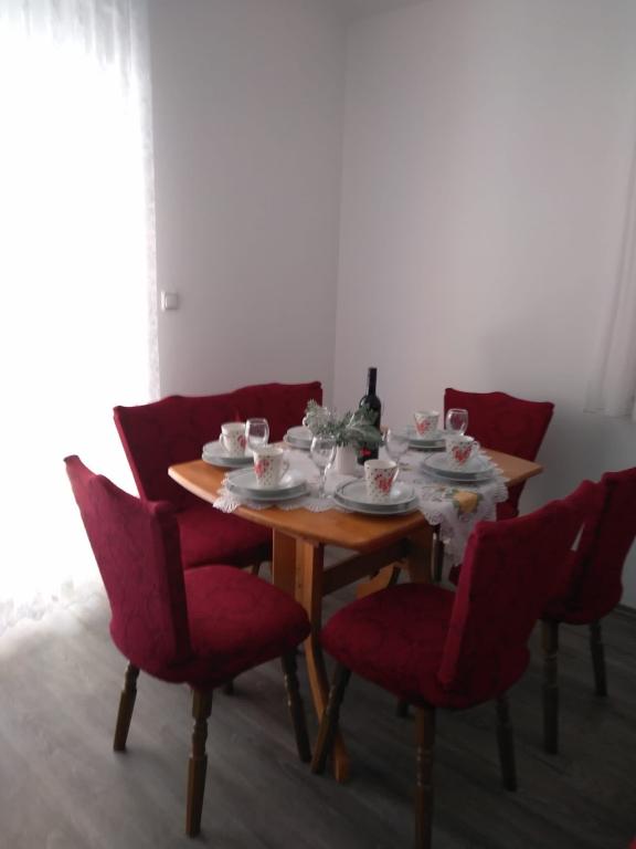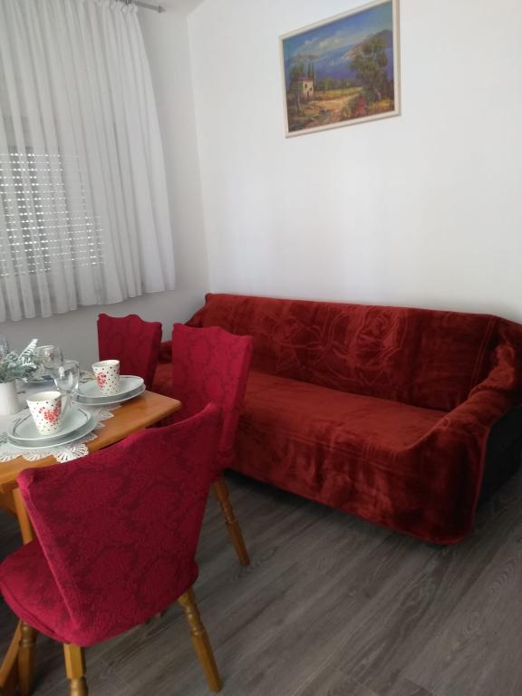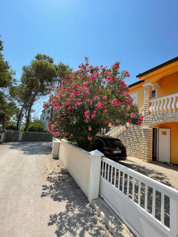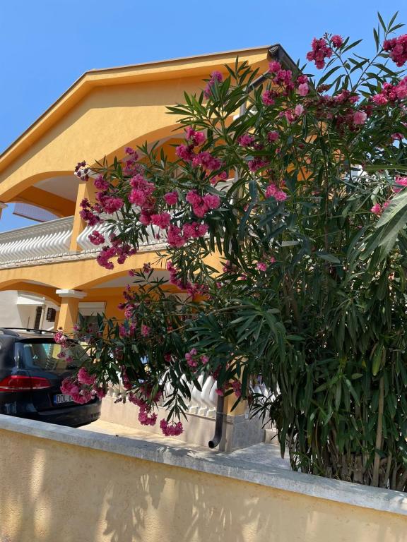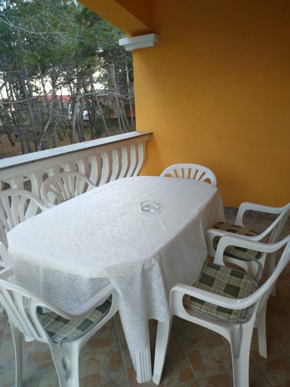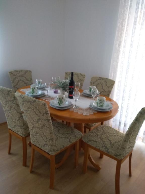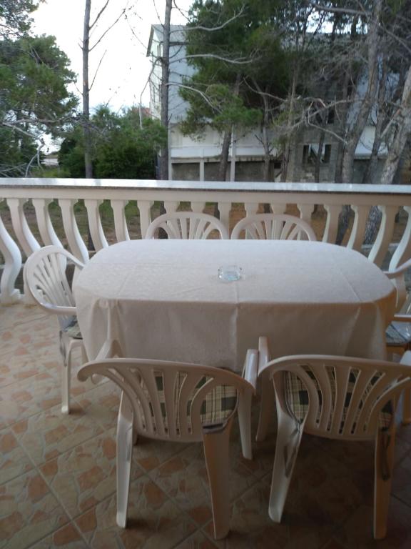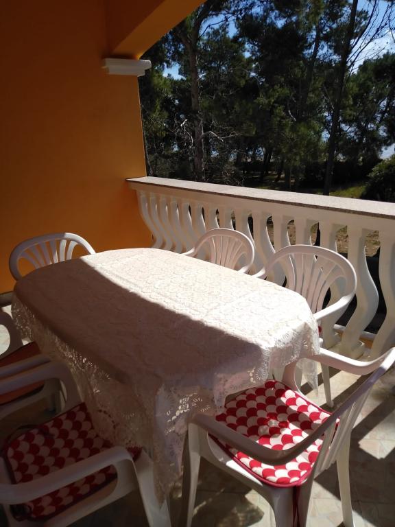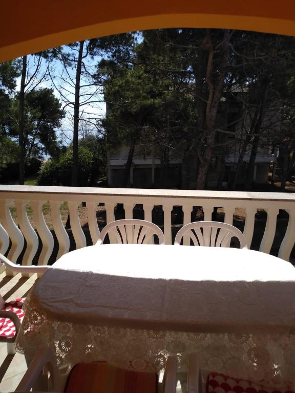 Csendes utcában, teljesen felszerelt lakás. A terasz a fenyvesre és a tengerre néz. A lakás teljesen bútorozott, minden szükséges eszközzel, mint például wi-fi, klíma, mikrohullámú sütő, tűzhely, hideg-meleg víz adagoló stb. Parkolás a ház udvarában található. A strand 2 perces sétával elérhető.