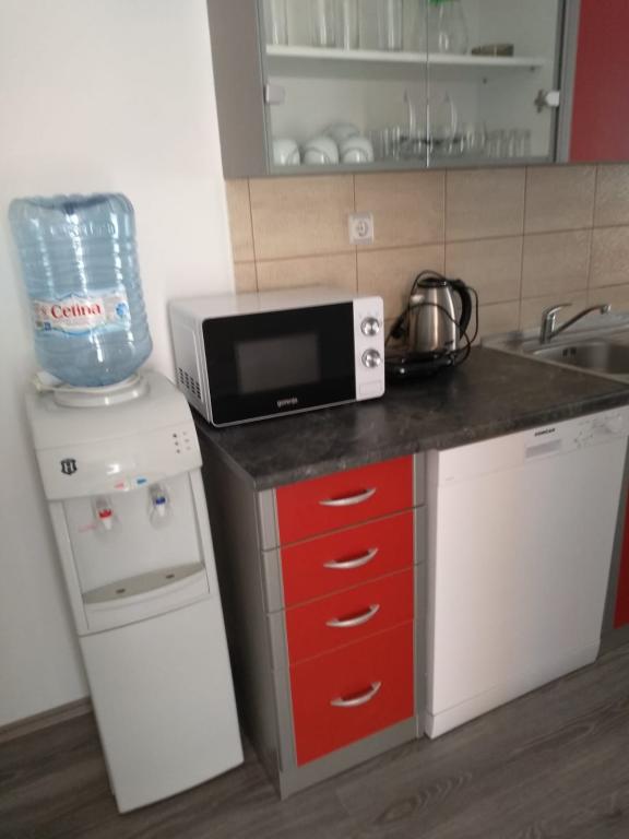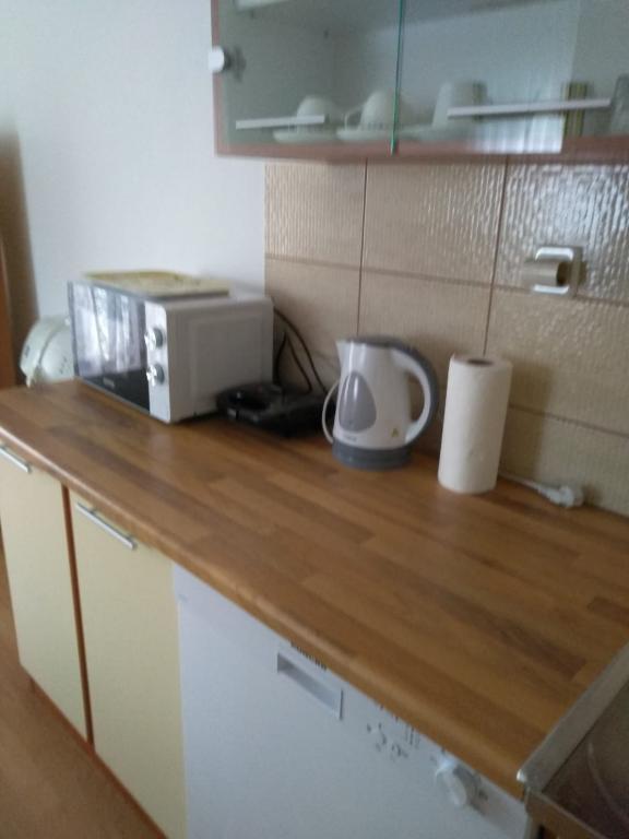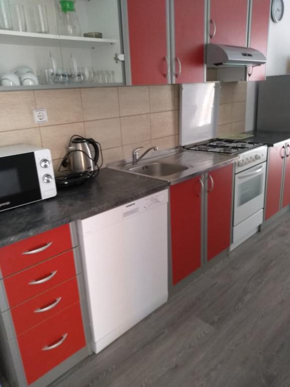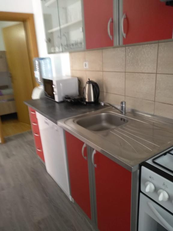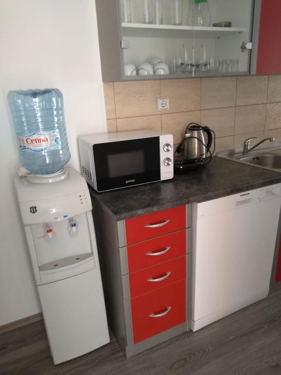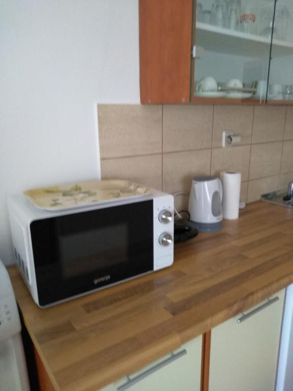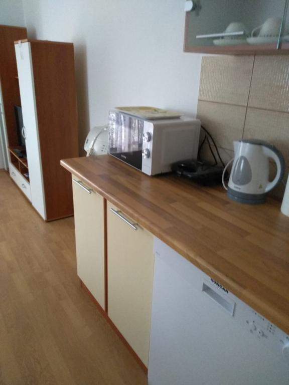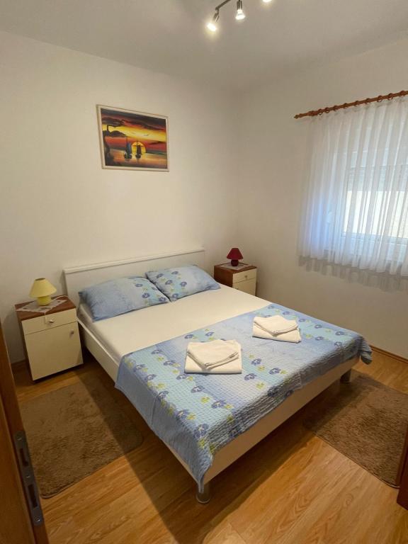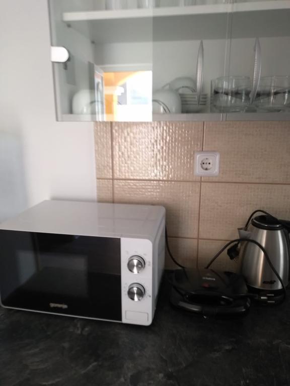 Csendes utcában, teljesen felszerelt lakás. A terasz a fenyvesre és a tengerre néz. A lakás teljesen bútorozott, minden szükséges eszközzel, mint például wi-fi, klíma, mikrohullámú sütő, tűzhely, hideg-meleg víz adagoló stb. Parkolás a ház udvarában található. A strand 2 perces sétával elérhető.