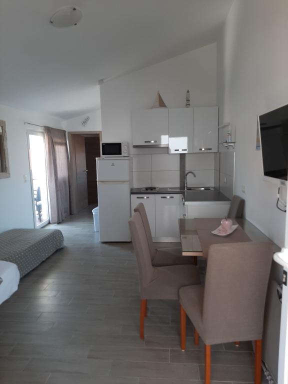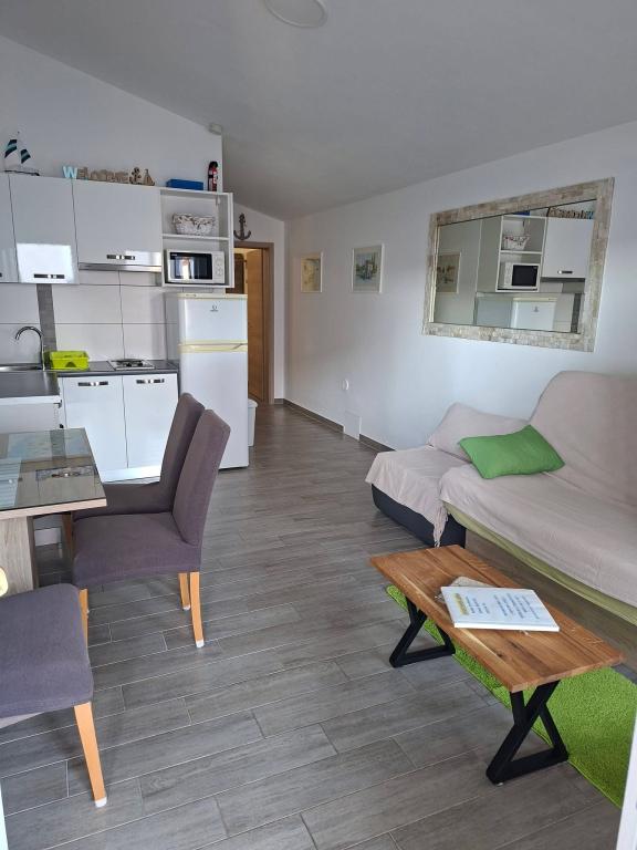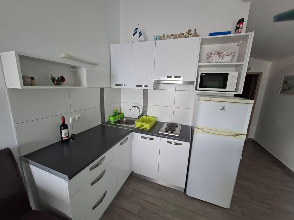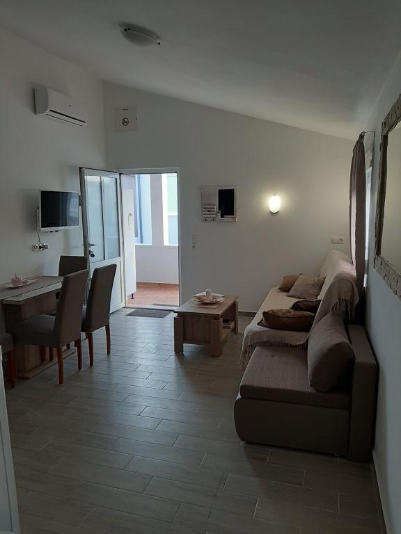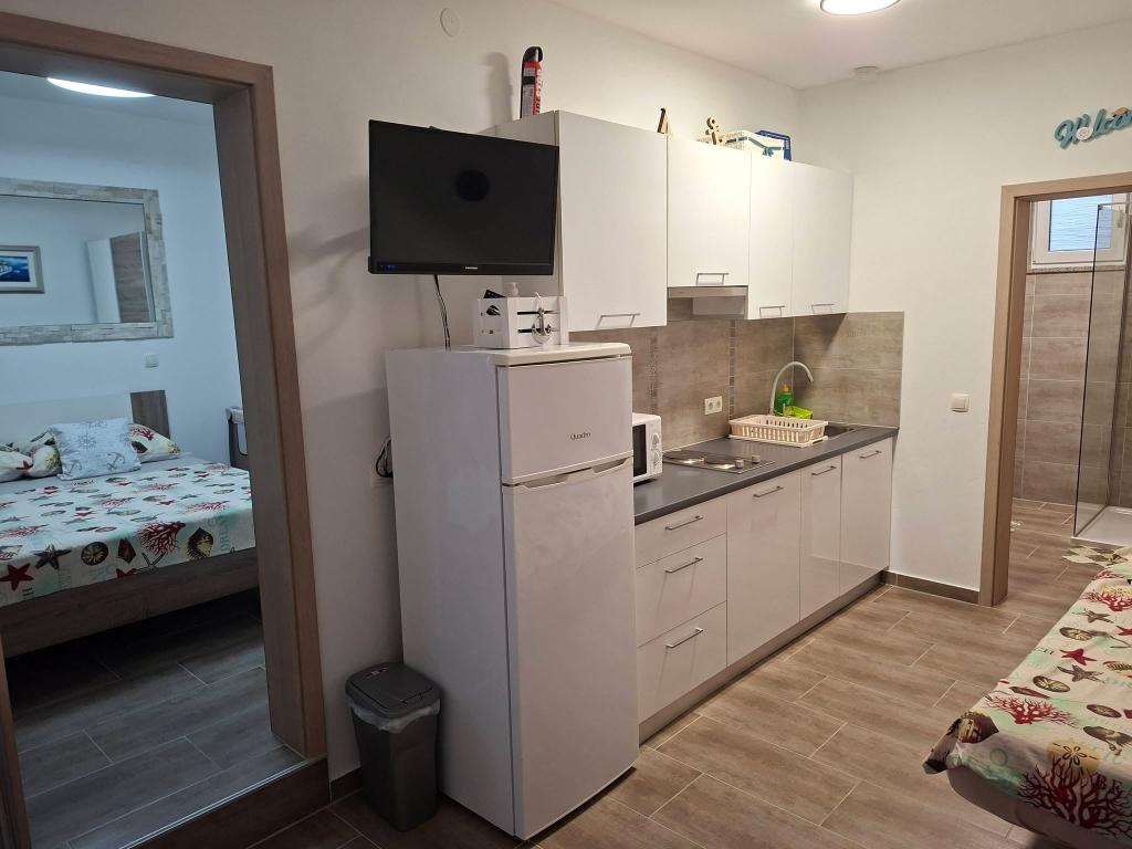 Vir szigetén, mindössze 150 méterre a tengertől, két apartman található, amelyek akár 5 fő befogadására is alkalmasak. Az apartmanok modern felszereltségűek, légkondicionáltak és kényelmes tartózkodásra alkalmasak. Minden apartmanhoz saját terasz tartozik ülősarokkal, a bekerített udvarban pedig a vendégek saját parkolót és grillezőt is használhatnak. A tenger és a strand közelsége, valamint a praktikus felszereltség alkalmassá teszi ezeket az apartmanokat családok és kisebb baráti társaságok számára, akik a főbb létesítmények közvetlen közelében keresnek szállást. Az apartmanok akár 5 fő elszállásolására is alkalmasak. Két hálószobából állnak, az apartmanokban zuhanyzós fürdőszoba és mosógép, valamint a nappalihoz kapcsolódó, teljesen felszerelt konyha található. A pihenéshez és a szabadtéri tevékenységekhez terasz is rendelkezésre áll ülősarokkal. Az apartmanok légkondicionáltak és modern berendezésűek, ideálisak családi nyaraláshoz vagy kisebb baráti társaságok számára.
