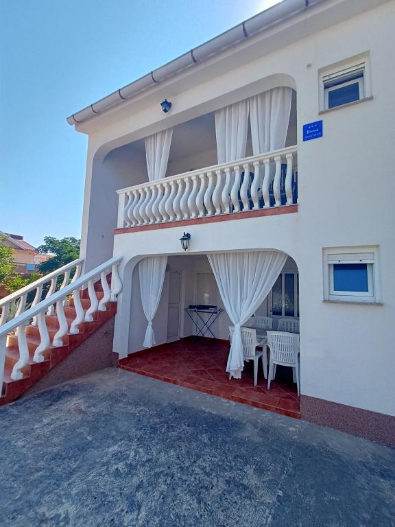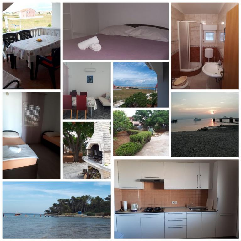 Újonnan felszerelt apartmanok nagy, elkerített udvarral Vir szigetén, amelyet híd köti össze a szárazfölddel. Három apartmant kínálunk. Minden apartmanhoz saját terasz tartozik. Barbecue használni. Minőségi konyhákkal, műholdas LCD TV-vel, légkondicionálóval, wi-fi-vel, fagyasztóval ellátott hűtőszekrénnyel rendelkeznek. Az apartmanban napozóágyak és napernyők állnak rendelkezésre. A strand kavicsos (kristálytiszta), 80 méterre a szállástól. Üzletek közelében 150m. A városközpont 3-5 perc alatt elérhető autóval. A családnak ideális szállás és környéke, nagy parkoló biztosított az udvarban. Kilátás a tengerre, Pagra és Velebitre. A Vir adrenalin park közelében szórakozás az egész család számára. 20 km-re Zadar sokszínű tartalmú városáig. Idegenforgalmi adó az árban.