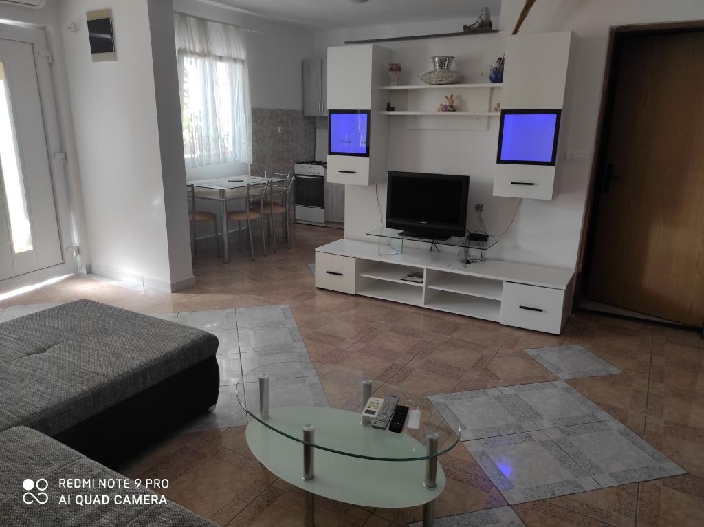 Teljesen felszerelt apartman kb. 70m2. . 2 hálószoba, nappali (TV, SAT TV, DVD, internet, légkondicionáló), konyha, fürdőszoba, nagy terasz tengerre néző kilátással, parkoló, grillező... 50 méterre a strandtól...