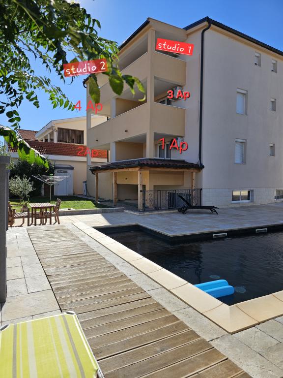 Nagyszerű apartmanok, barátságos házigazdák, közel a strandhoz, a központhoz... Gyönyörű medence a terasz mellett, grillezővel esti összejövetelekhez.
