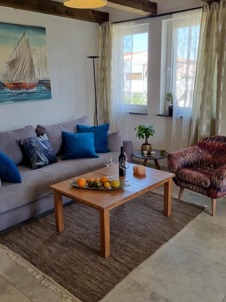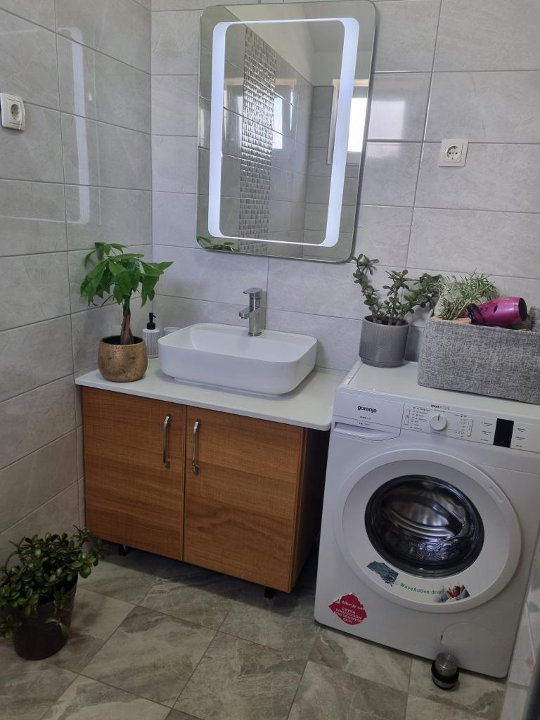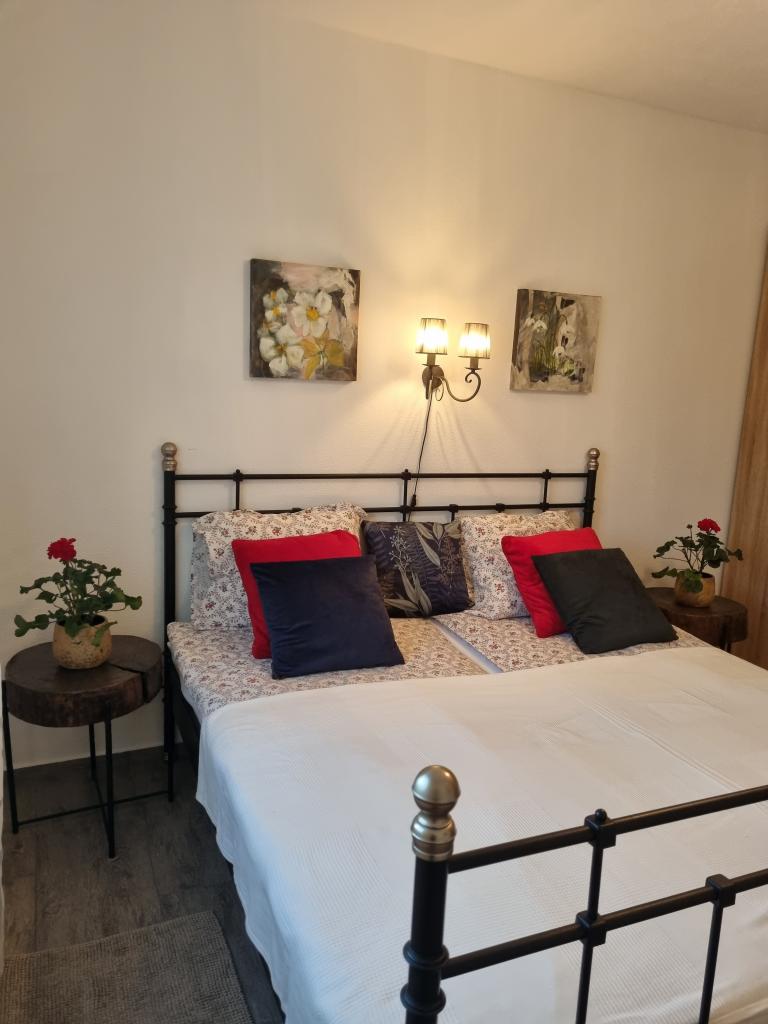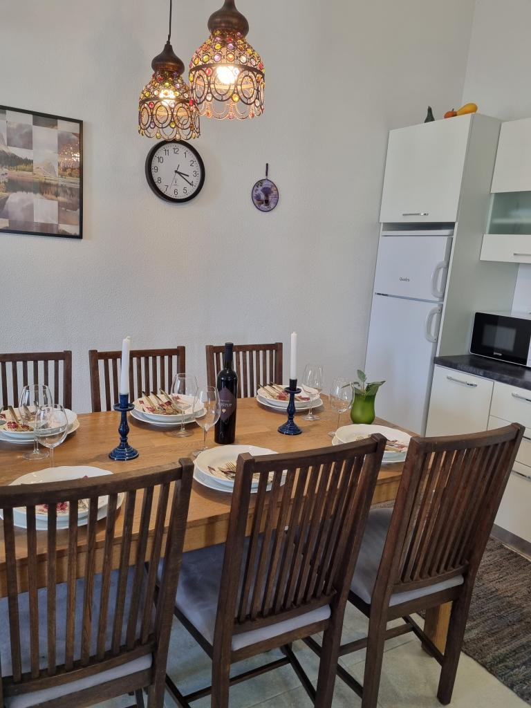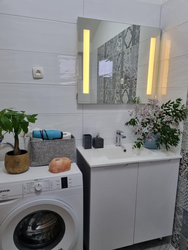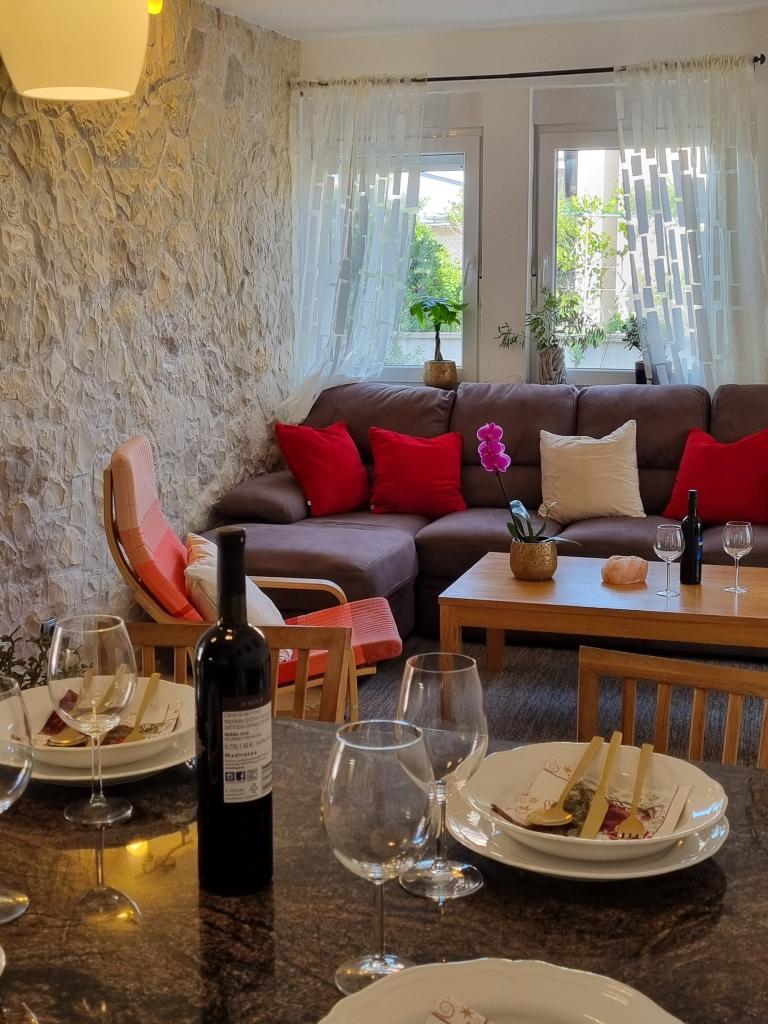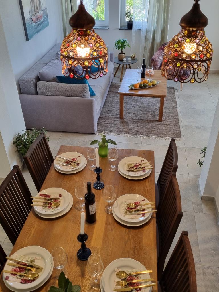 Üdvözöljük a Villa Emilia luxus apartmanjaiban a Vir-on és egy gyönyörű, zöld kertben, amely a déli oldalon a kertre néz, az északi oldalon pedig a Velebitre néző erkélyek. Minden apartmanban két tágas hálószoba, nappali, teljesen felszerelt konyha, mosogatógép, sütő, tűzhely, mikrohullámú sütő és hűtőszekrény található. Fürdőszoba mosógéppel kompletten. Vasaló és vasalódeszka. A Villa Emilia on Vir 300 méterre található a tengertől és a LUKA strandtól a déli oldalon. Parkolás minden apartmanhoz.