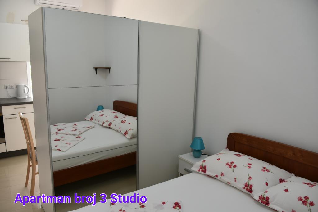 3 teljesen és modernül felszerelt apartman kiadó Vir csendes részén, Lučica településen. 3 apartman: A) Az "1. számú apartman" és a "2. számú apartman" kétszobás apartmanok (nappali teljesen felszerelt konyhával, hálószoba és fürdőszoba). Légkondicionált, műholdas TV, internet, ingyenes parkolás, bekerített udvar, szúnyogháló. B) A "3. számú apartman stúdió" teljesen felszerelt konyhával. Légkondicionált, műholdas TV, internet, parkolás, bekerített udvar. A "3. számú apartman stúdió" maximum két fő részére alkalmas!