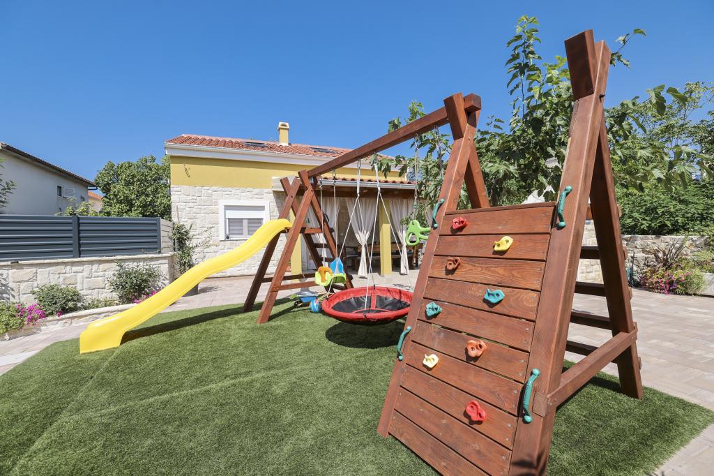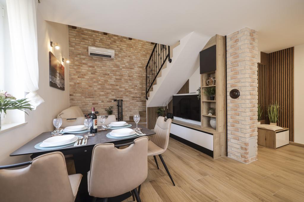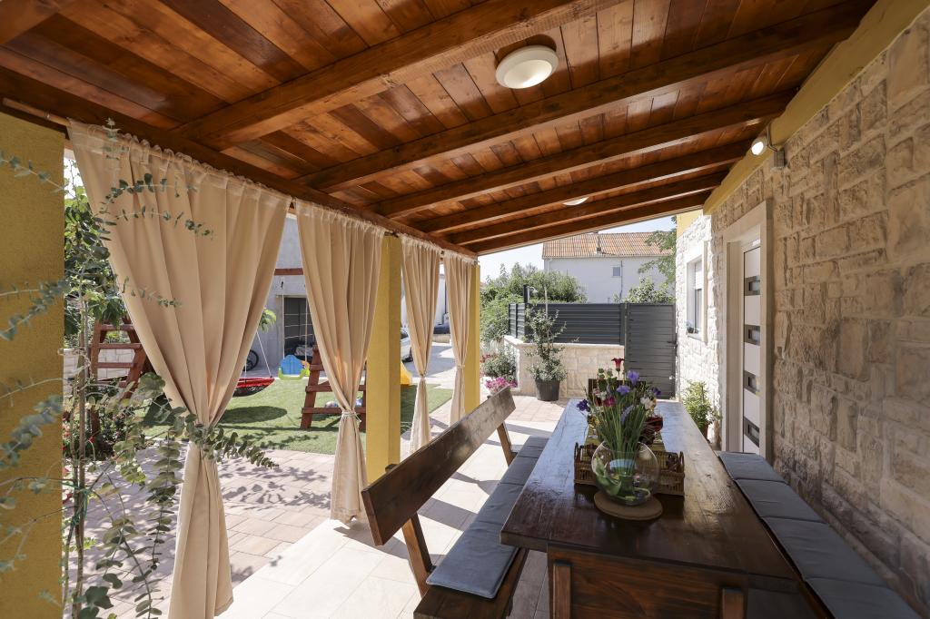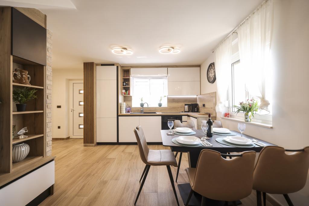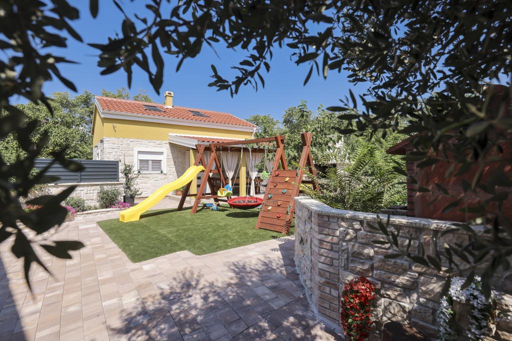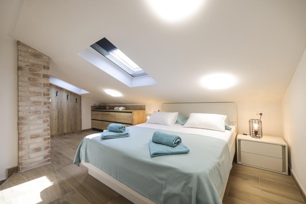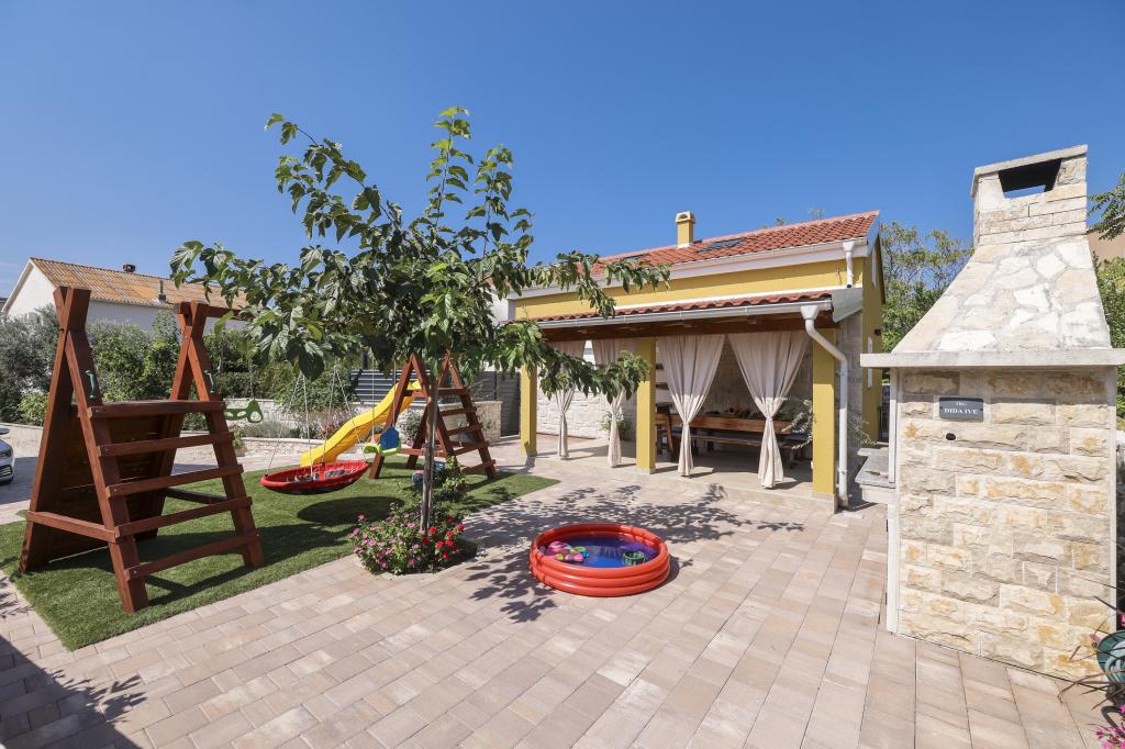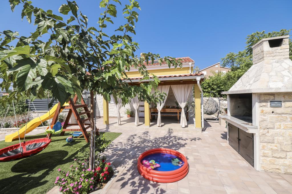 Ez az új nyaraló Vir szigetének kellős közepén található. A zaj és a kilátás elől rejtve. A házban 2 hálószoba található egy franciaággyal és egy franciaággyal a galérián. A teljes kapacitás 6 fő. Ezenkívül két fürdőszoba található, az egyik a tetőtérben, a másik a földszinten, mosógéppel és ruhaszárítóval. A konyha is minden géppel felszerelt. Az udvaron fedett terasz, grillező és játszótér található. Parkolás a vendégek rendelkezésére áll, valamint egy hely a garázsban. Minden szomszéd megfelelő távolságra van, és magánéleted van. Ha a központban szeretne lenni, közel minden létesítményhez, de mégis rejtve, ez a ház a megfelelő választás az Ön számára. Várjuk érkezését.