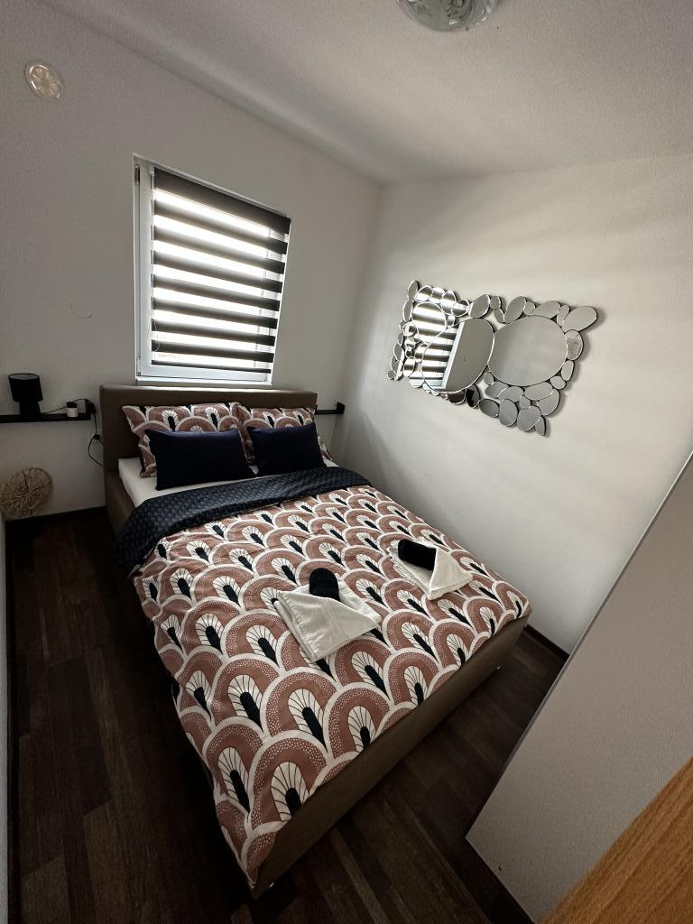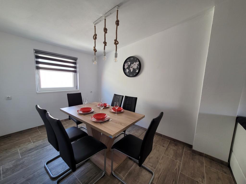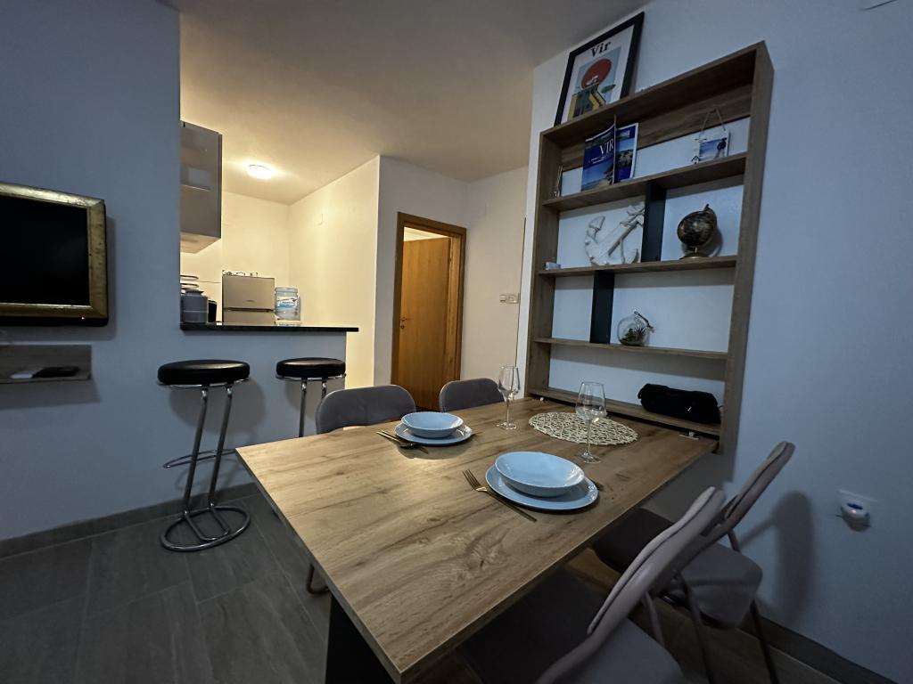 Kiadó 4+2 fős apartman Vir szigetén, Žitna I.-ben, zsákutcában, csendes utcában, 3 gépkocsi parkolási lehetőséggel, udvarral, terasszal, grillezővel, a strandtól és Vir központjától 750 méterre , 8 perc séta vagy 2 perc autóút Az apartmanhoz napi 15 euró felár ellenében 4 fős "Clubcar" biztosítunk, elektromos moped bérelhető napi 15 euróért. Az apartmanban két hálószoba, fürdőszoba WC-vel, konyha és nappali étkezővel, a nappaliban egy kanapé található. Légkondicionáló, wi-fi, TV, mikrohullámú sütő, jégkészítő, hajszárító, vasaló biztosított.