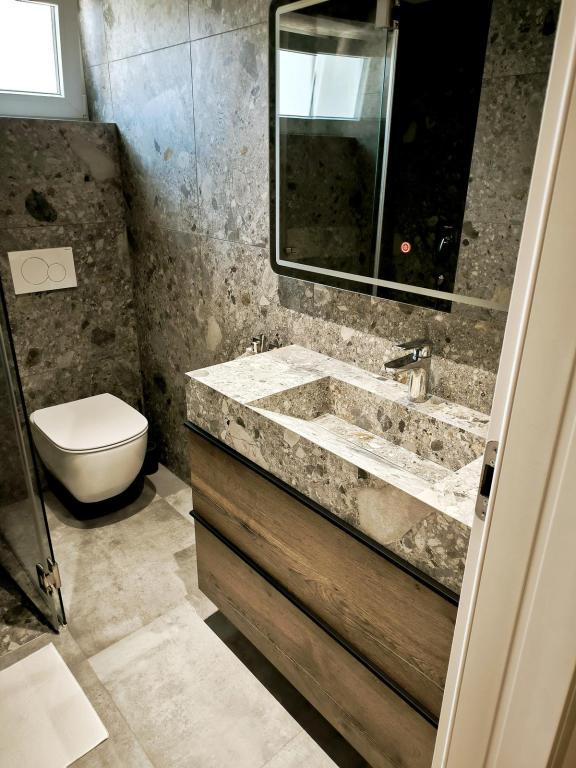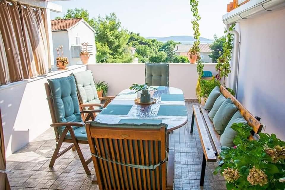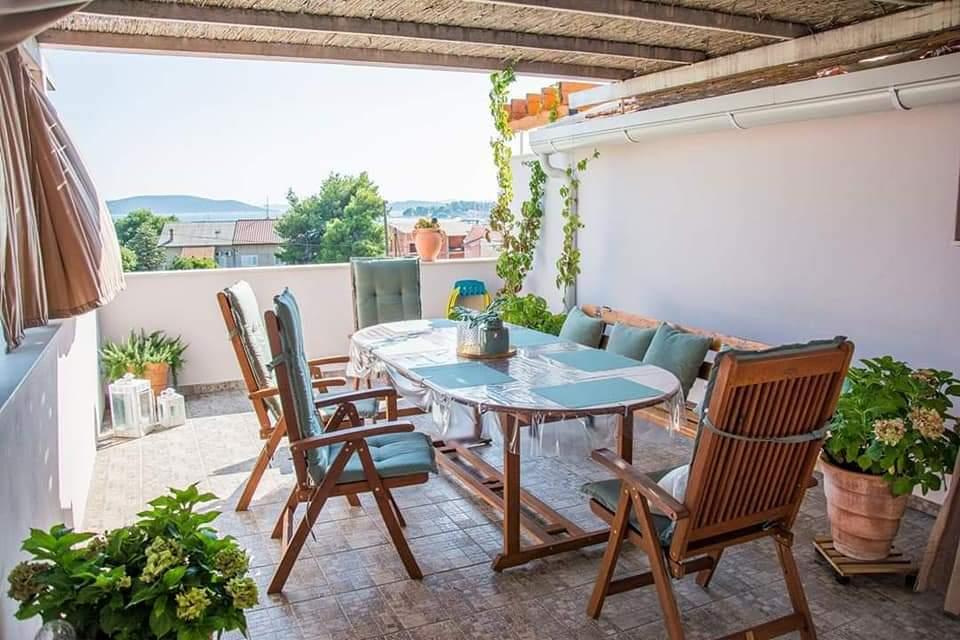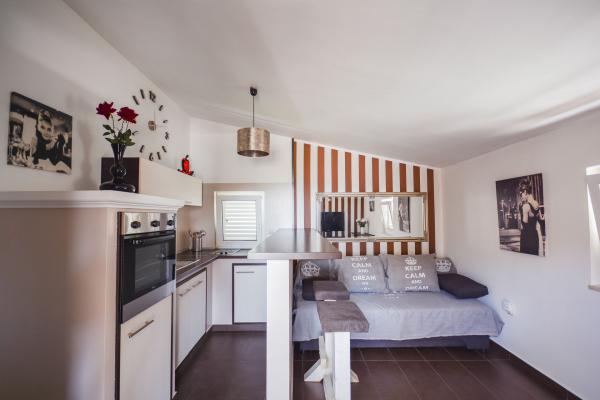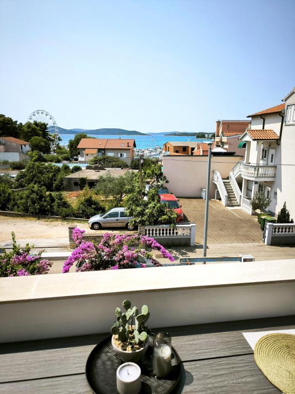 Teljesen berendezett apartmanok Vodice csendes részén, a tengertől számított második sorban. A szálláshely 3 perc sétára található a fő strandtól és 10 percre a központtól... Apartmanjaink előnye, hogy minden a ház közelében van, így nem kell autót használnia... Az apartmanokhoz gyönyörű, nagy terasz tartozik, ahonnan kilátás nyílik a tengerre, a szigetekre és a központra... Az egész emelet 9 fő részére kiadó, ideális egy nagy család számára....
