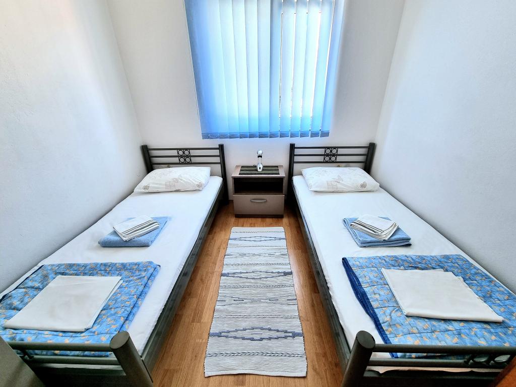 Az apartmanok egy új építésű épületben találhatók, csendes helyen. A létesítmény 100 m-re található a strandtól, és egy 15 perces könnyű séta a tenger mentén Vodice központjába. A 9016-os számú apartman a földszinten, míg a 9017-es azonosítószámú apartman a ház első emeletén található. Minden apartman külön bejárattal rendelkezik, és két hálószobából áll - az egyik franciaággyal, a másikban pedig két egyszemélyes ággyal, egy nappali smart TV-vel, egy fürdőszoba, egy teljesen felszerelt konyha és egy terasz. A konyhában hűtőszekrény fagyasztóval, tűzhely sütővel, mikrohullámú sütő, vízforraló és kávé, valamint az ételek elkészítéséhez szükséges összes edény található. Az apartman közelében szupermarketek, éttermek, strandbár, kávézó, sportolási lehetőségek és sok más vonzó létesítmény található.