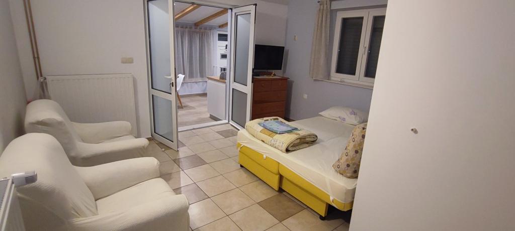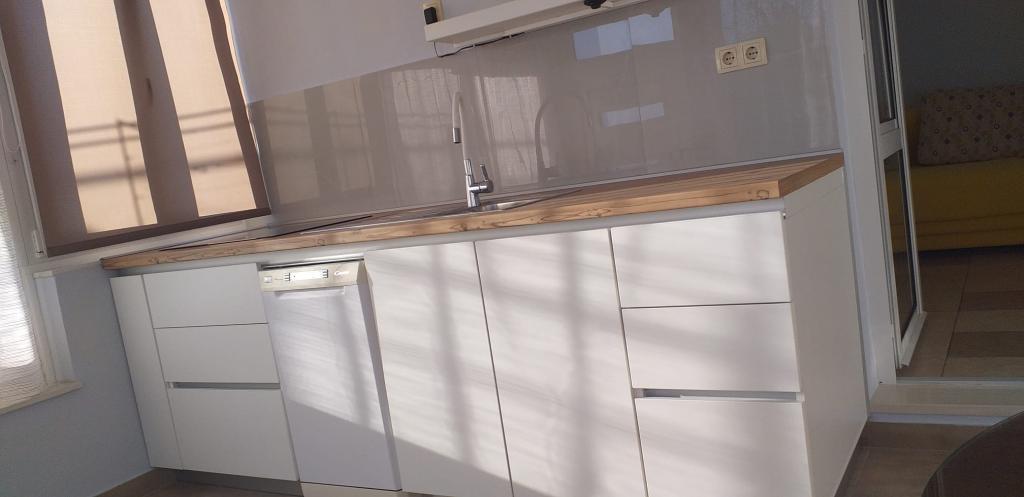 4 éjszakát maradtunk a lakásban, és élveztük a tengerre néző kilátást. Különösen a gyerekeknél nagy plusz 100 méteres a Blue Beach. Parkolás az apartman előtt. A készülék elég, és mindent megtalál, amire szüksége van, mosogatógép, mosógép, hűtőszekrény, fagyasztó, kis konyha. Az éghajlatra nem volt szükségünk, mivel a földszinti apartman viszonylag hideg. Anka segíteni fog neked, amire szüksége van, vagy megbocsát.