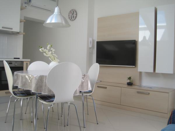 Családi ház modern apartmanok tengerre néző kilátást kínál mind apartmanok. Az apartmanok garantált parkolóhely az épület előtt. Ez mellett található a tengertől és 300 méterre a híres városi strand a hotel alatt Olympia.