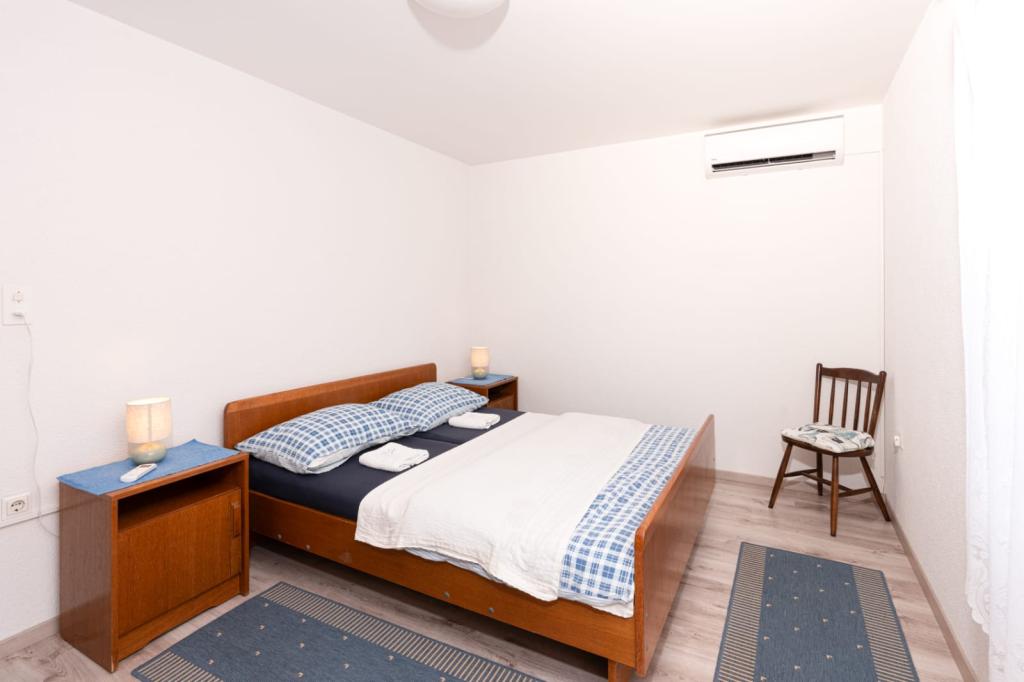 Teljesen felszerelt, három hálószobás, 90 m²-es, tengerre néző apartmanok 4-6 fő részére alkalmasak. A vendégek rendelkezésére áll egy nagy, fedett parkoló, akár 4 autó számára, valamint grillező és nyárs az udvari teraszon. Az apartmanok a városközponttól 500 méterre, a strandtól pedig 5-10 perc sétára (kb. 400 m) találhatók. Az apartmanok ára tartalmazza a Wi-Fi internetet, a légkondicionálót, a fedett parkolót, a grillező használatát és az idegenforgalmi adót. Az apartmanok elsősorban családok számára készültek. Kérjük az érdeklődőket, hogy ajánlatkérés küldése előtt ellenőrizzék az "Elérhetőség" és az "Árlista" részeket. Telefonos foglalás nem lehetséges. Köszönjük megértésüket.