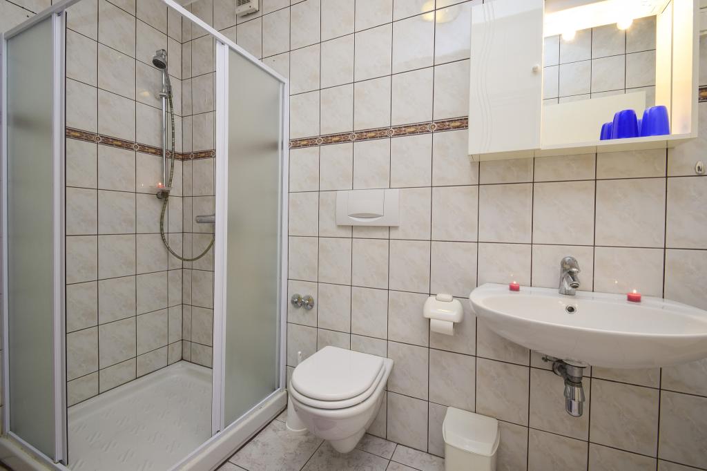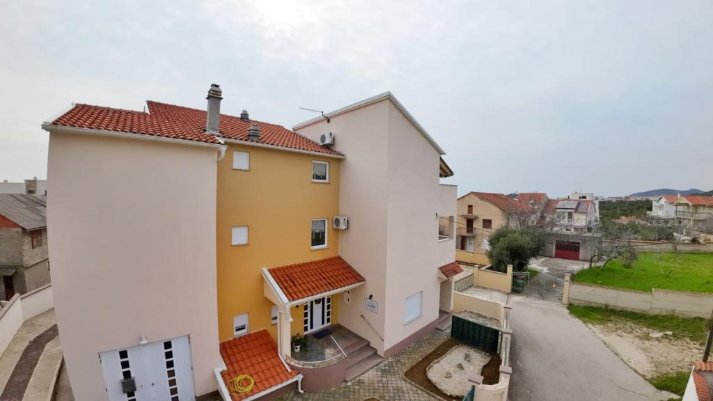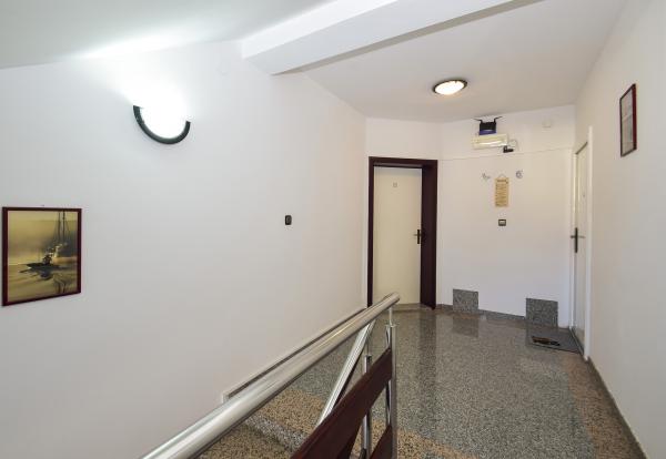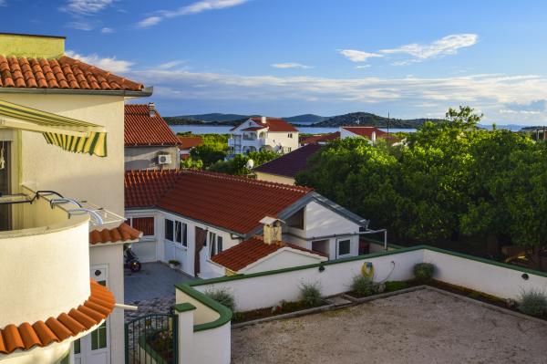 A Villa Sanja egy modern épület, Vodice egyik legjobb helyén, 350 méterre a strandtól, 7 apartmannal, erkéllyel vagy terasszal. Mind a hét apartmanból gyönyörű kilátás nyílik a tengerre. Minden apartmanban pótágy helyezhető el. Az apartmanok modern berendezésűek és rendkívül tágasak. 5 A két fős apartman 38 m² alapterületű - egy hálószoba, egy nappali, egy konyha háromszemélyes kanapéval és egy erkély. 2 2 fős apartman 50 m²-es nappalival, konyhával, hálószobával, fürdőszobával és nagy erkéllyel vagy terasszal. Egy apartman, teljes emelet 8-10 fő részére: • négy nagy kétágyas hálószoba, ebből kettő egy harmadik ággyal • négy fürdőszoba WC-vel, nagy konyha, társalgó. • Parkolás a telken vagy a házban • kb 15 perc sétára Vodice központjától • kb 5 perc sétára a strandtól Ez a családi ház kb. 350 méterre található a strandtól. Parkolás a létesítményben vagy otthon.