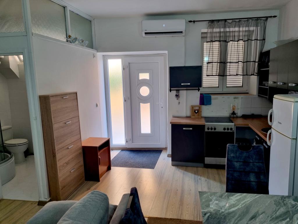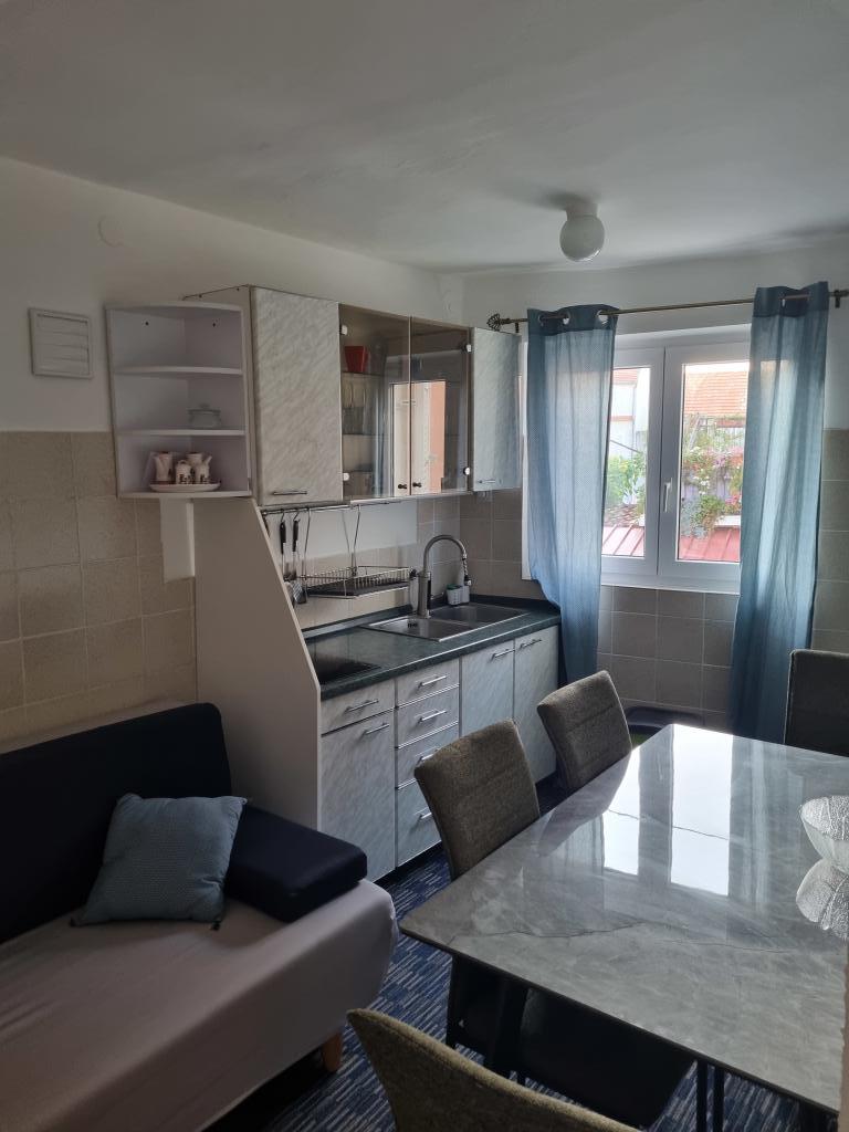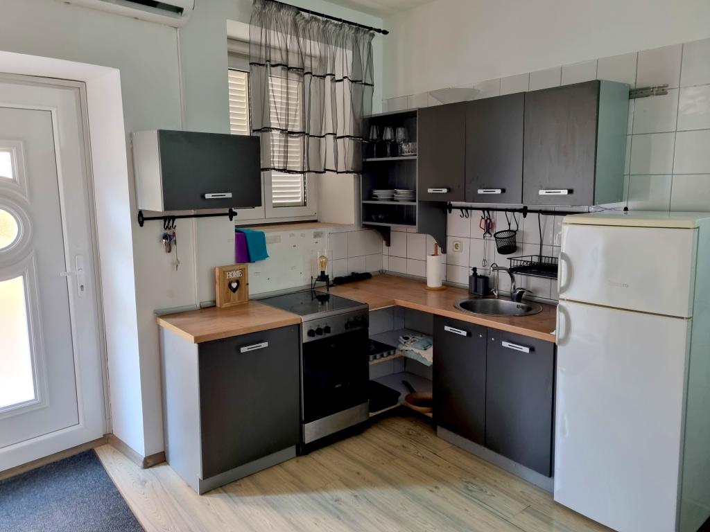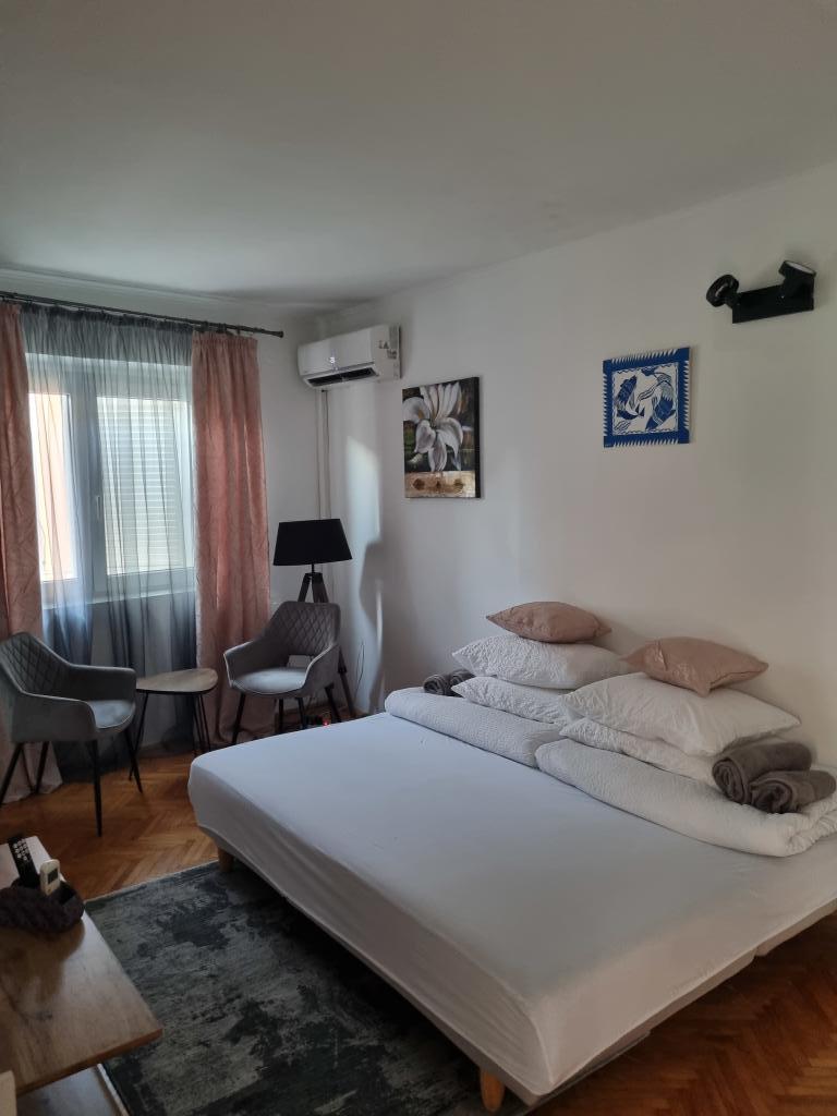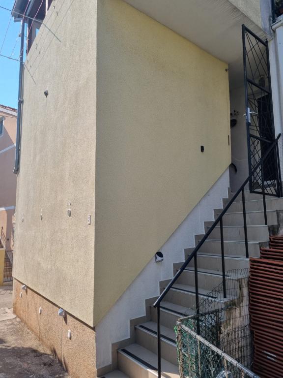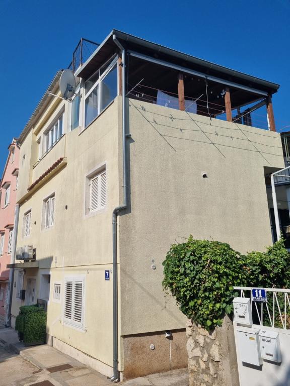 Az apartmanház Vodice központjában, egy kis mellékutcában található. Mindkét apartman vendégei rendelkezésére áll egy fedett terasz falfestménnyel és pihenő- és társasági térrel, valamint egy tetőterasz grillezővel, nyugágyakkal és kilátással a tengerre és a városra.