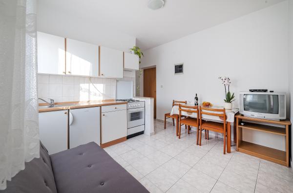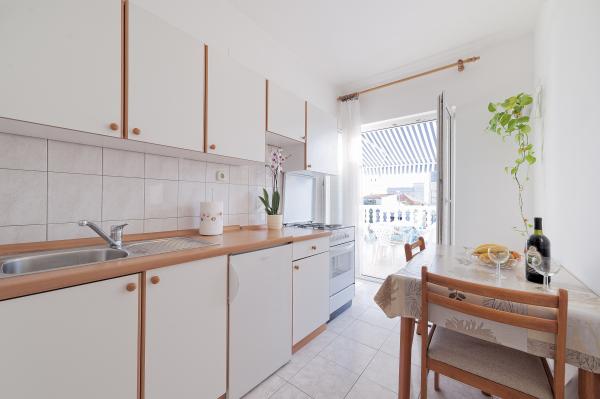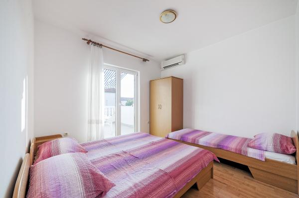 Teljesen felszerelt apartmanok, családi ház 1. emelete, Vodice csendesebb részén. A fő strand 5 perc sétára, a városközpont 10 perc sétára található. A strand sok tartalmat kínál sport- és rekreációs, szórakoztató és sok tartalmat kínál a gyermekek számára. Az üzlet ugyanazon ház földszintjén található. A benzinkút, éttermek, kávézók és egyéb létesítmények kéznél vannak, azaz nincs szükség autóra, hogy körbejárhasson.