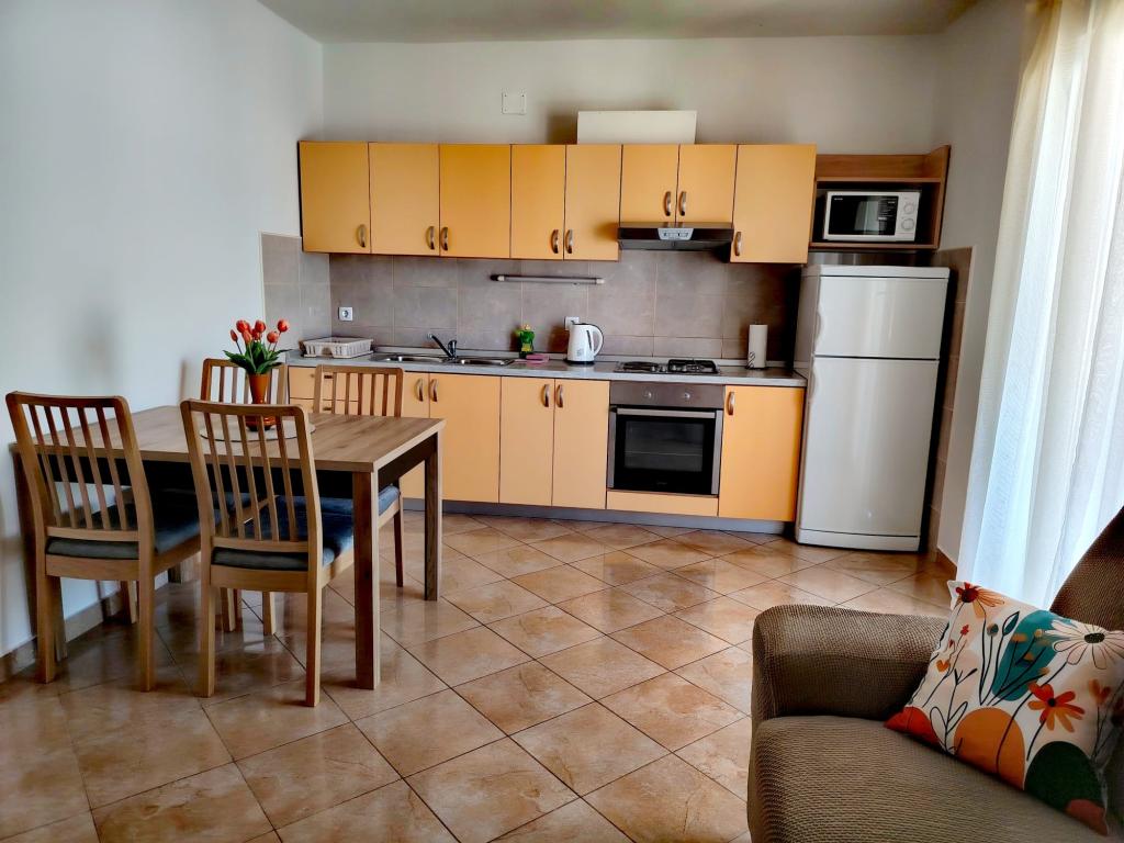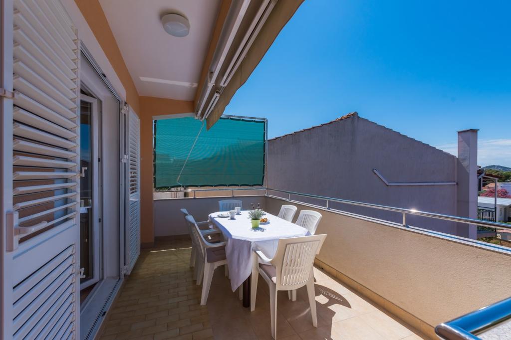 Az Apartments Marko a Blata utcában található, Vodice városának csendes részén, a Punta Hotel közelében. A Plava Plaža fő strand 100 méterre, a városközpont pedig 300 méterre található az apartmantól. 3 apartmannal rendelkezünk: 4+2-es apartman, 4+1-es apartman és 2-es apartman. A 4+2-es apartman 2 hálószobával rendelkezik, melyekben egy franciaágy található, 1 fürdőszobával, nappalival, kanapéággyal, konyhával és terasszal. A 4+1-es apartman 2 hálószobával rendelkezik, melyekben egy franciaágy található, 1 nappali kanapéággyal, konyhával, fürdőszobával és terasszal. A 2-es apartman 1 hálószobával rendelkezik, fürdőszobával, konyhával étkezővel, nappalival, kanapéággyal és egy erkéllyel, ahol egy kétszemélyes asztal található. Minden apartman mosógéppel és légkondicionálóval felszerelt. Parkolás az épület udvarán biztosított. A vendégek használhatják a grillezőt. 4+ fő után 20,00 EUR/nap. Üdvözöljük!