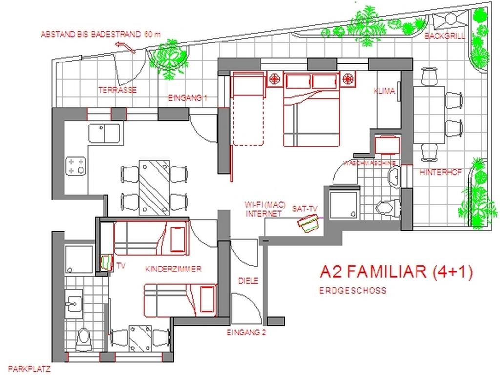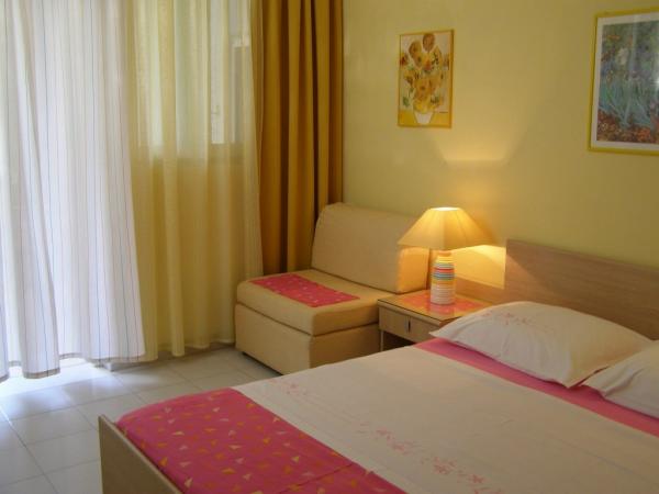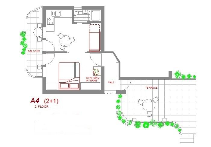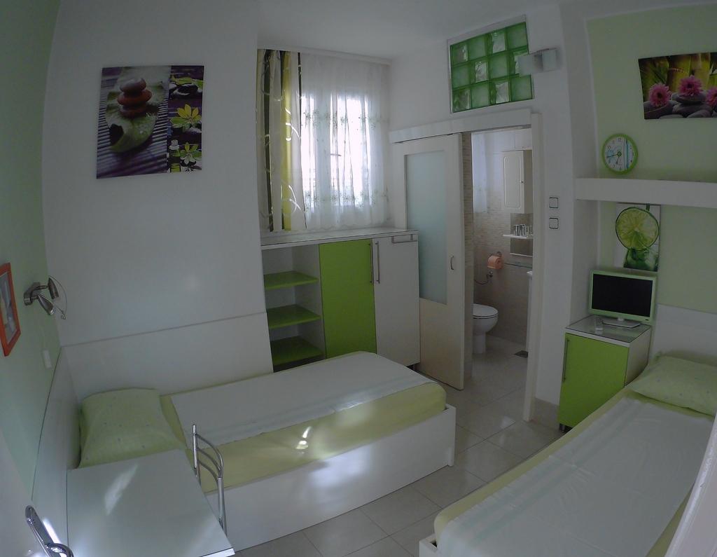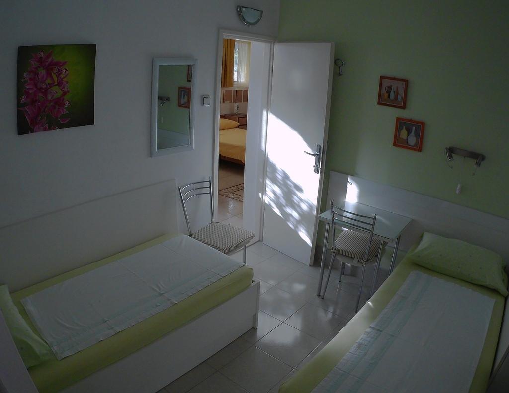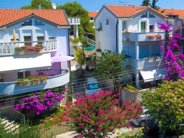 Csak negyven méterre a strandtól, az első sorban a tengerig, megfelelő hely a pihenésre. A virágos, tengerre néző apartmanok külön bejáratúak, klímával, wi-fivel, televízióval és az udvarban őrzött parkolóval rendelkeznek. A földszinti A2-es apartman megfelelő választás 4-5 fős családok számára. A lakásban 2 ablakos fürdőszoba, 2 TV, mosogatógép, mosógép és a ház mögött külön udvar található a szabadban való tartózkodáshoz. Az udvaron grillező, asztal székekkel és esernyővel, ruhaszárító sor található. A földszinti A3-as apartman jó választás 2-3 fős nyaraláshoz. Az akadálymentesített, virágos loggiával rendelkezik egy asztallal a szabadtéri élethez, kilátással a tengerre. Apartman A4, a második emeleten, 2-3 fő részére, nagy terasszal és erkéllyel rendelkezik, kilátással a tengerre és a városra. A terasz fedett és kerti bútorokkal van felszerelve. Az 1. emeleti Couple apartman ideális párok számára. A fedett terasz folyamatos légáramlással és szép kilátással rendelkezik.