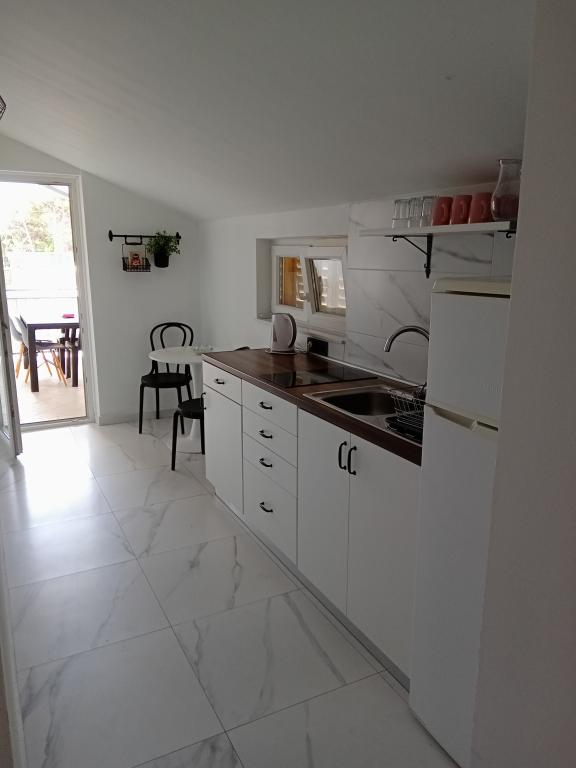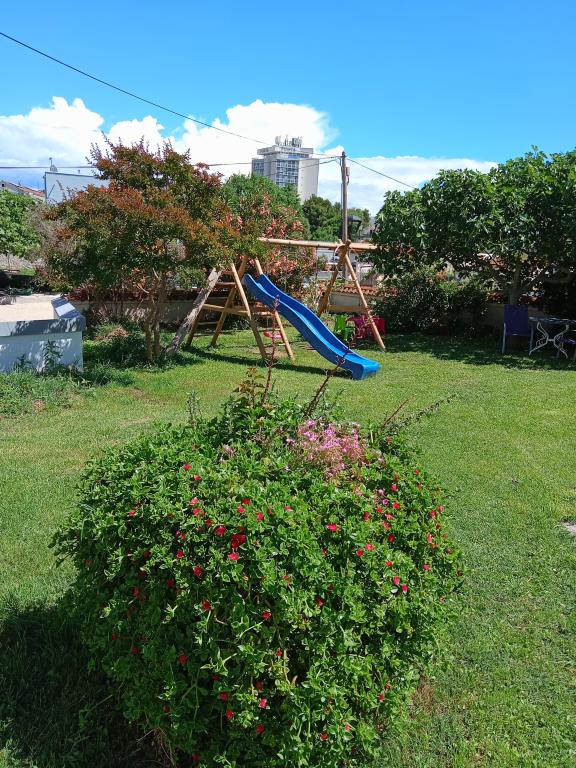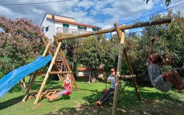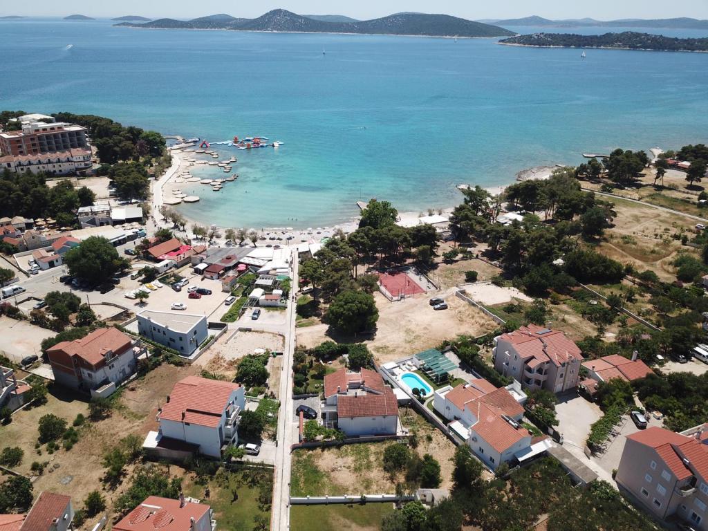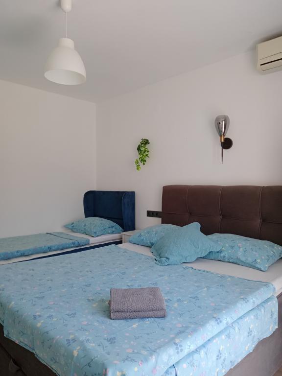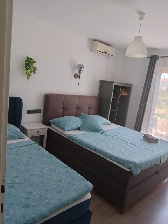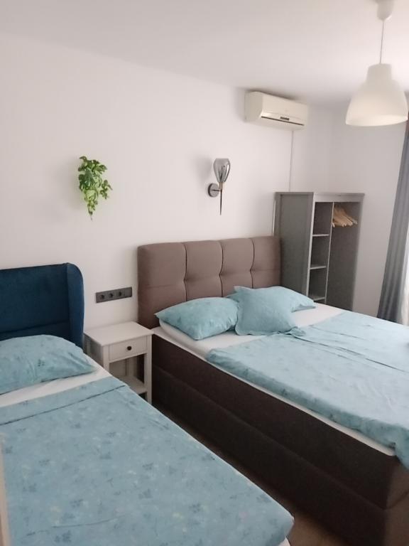 Apartments Blue Beach, egy csendes részén, a város, a parton, tengerparti. A központ és egyéb létesítmények csak 5 perc gyalog. Az apartmanok mindegyike tengerre néző, fenyőerdő és gyönyörű kertben. Az apartmanok igényesen berendezett minden szükséges felszerelést. Az a lehetőség, kert, grill és játszótér. parkolás az udvarban.