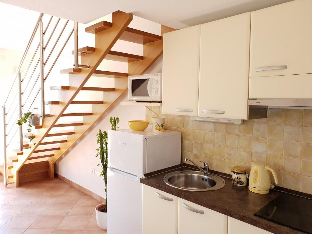 Az egyik 84 m2-es (ID: 24697), a másik 58 m2-es (ID: 24698) luxus apartmanok Vodice csendes részén található családi ház első emeletén találhatóak, 1700 m2-es mediterrán kerttel körülvéve, csak 10 perc sétára a központtól és a legközelebbi strandtól, és 5 percre. a boltból. Az apartmanok modern berendezésűek, légkondicionáltak, SAT-TV-vel, internettel (Wi-Fi), mosógéppel, mosogatógéppel felszereltek. Mindkettő kétszobás, azzal a ténnyel, hogy a galériákon találhatóak a franciaágyas szobák, melyek szintén légkondicionáltak. A ház előtt fedett parkoló és nyári konyha grillezővel. Vodice központjában, csendes környéken, a Plimica 96A címen bérelünk egy nyaralóházat udvarral és parkolóval. A ház mindennel fel van szerelve, ami egy kellemes nyaraláshoz és hosszabb tartózkodáshoz szükséges. Küldje el nekünk kérdését, és mi a legjobb ajánlatunkat adjuk. szívesen :)