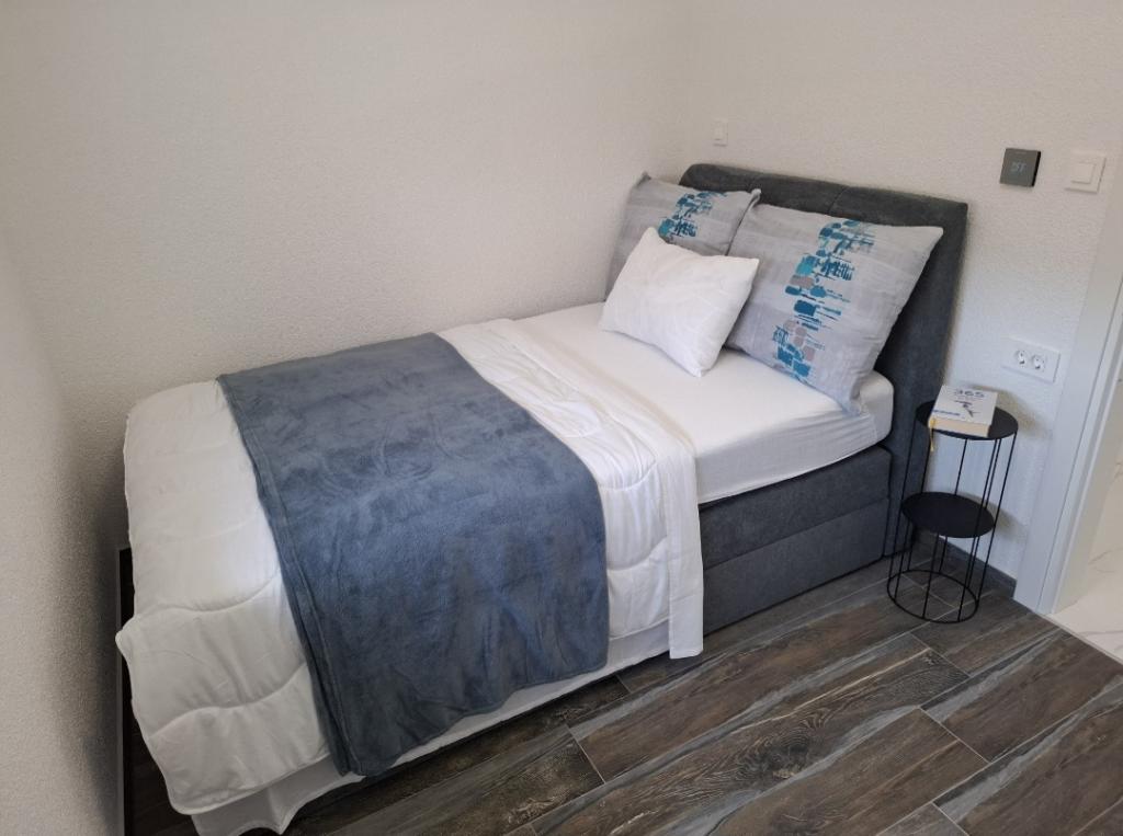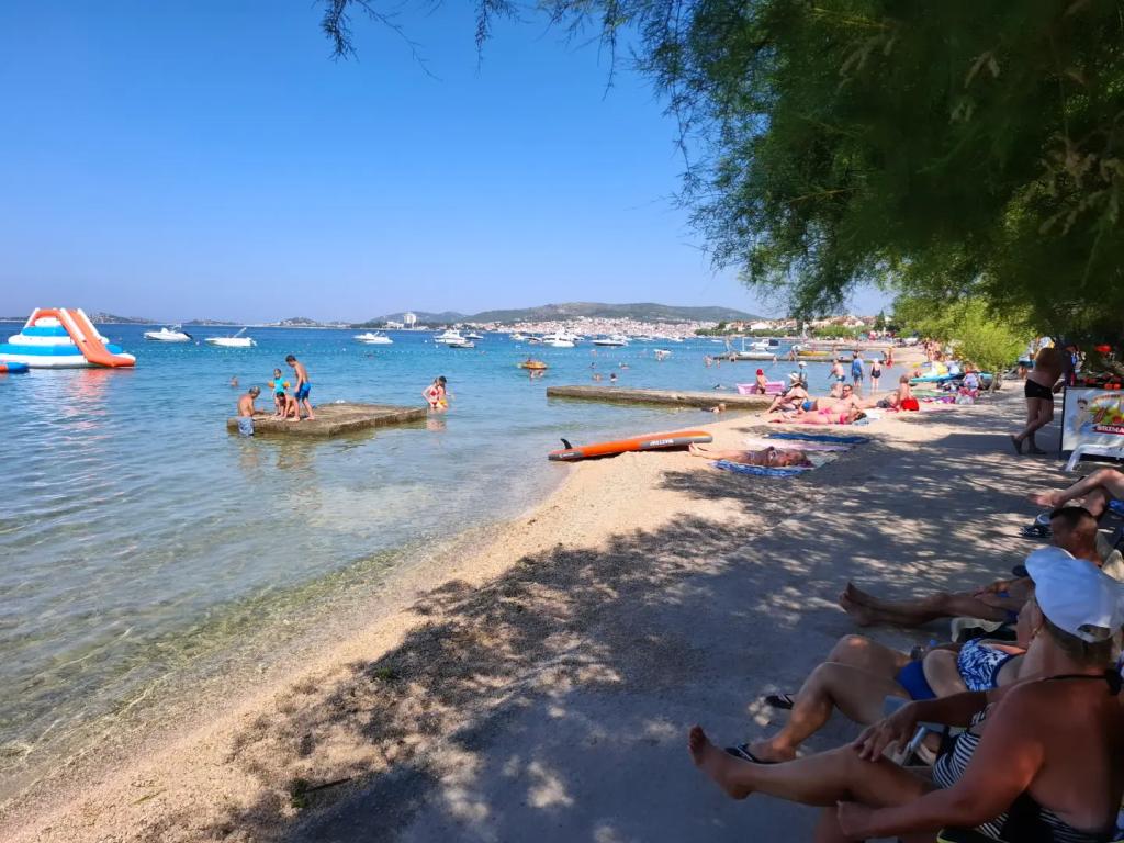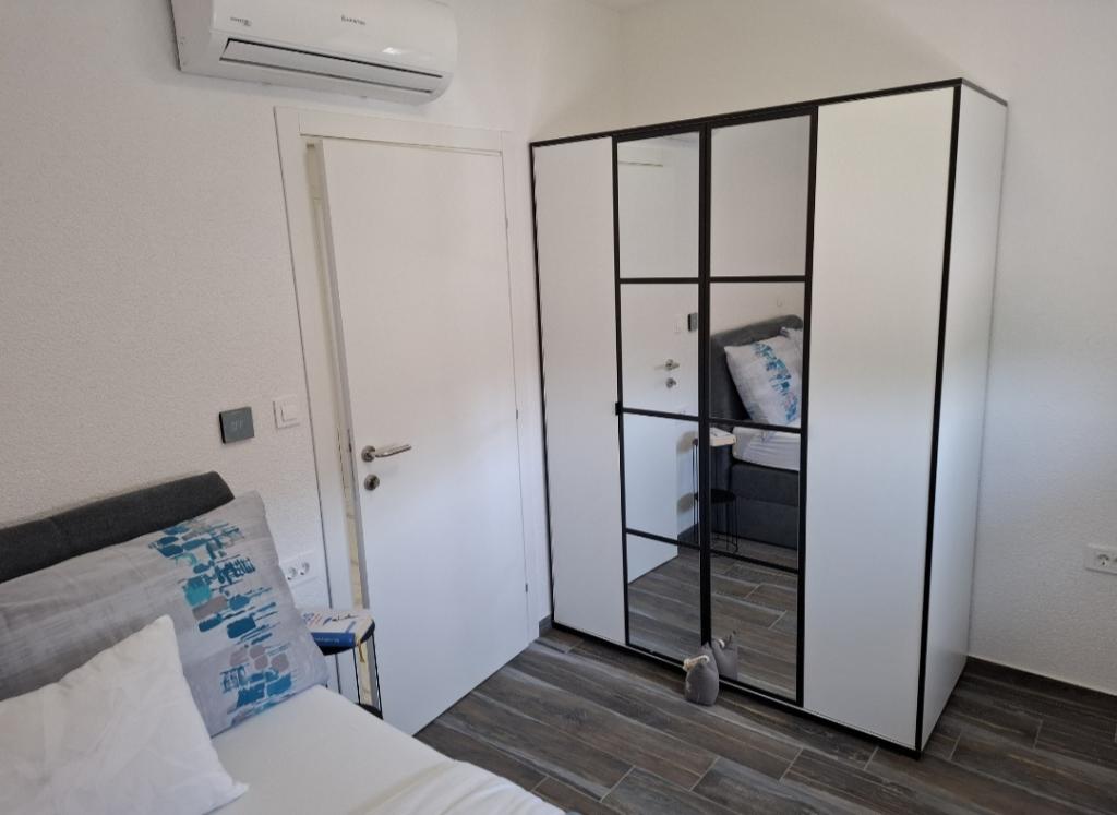 Az apartmanok Vodice csendes részén találhatók, ami tökéletes hely egy nyaraláshoz. Az apartmanok teljesen felszereltek, így minden szobában légkondicionáló, műholdas TV, WI-FI, minden felszereléssel ellátott konyha és az épület előtti parkolás is biztosított. A strandon egész napos parkolási lehetőség áll rendelkezésre, amely benne van az apartman bérleti díjában. További információkért Gmailen vagy telefonon is felveheti velünk a kapcsolatot. Érkezéskor a házigazda készen áll arra, hogy találkozzon Önnel, és megmutassa az éttermeket, kávézókat, cukrászdákat, strandokat és parkolóhelyeket. Üdvözlet.