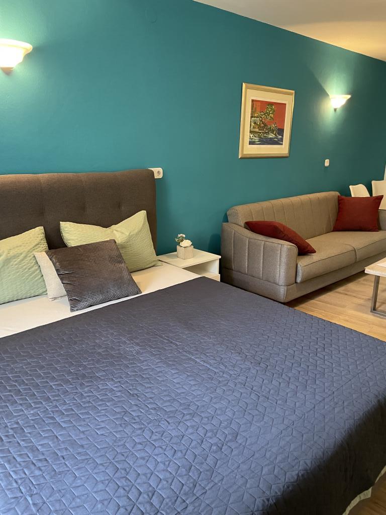 Teljesen és modernül felszerelt apartmanok Vodice központjában, mintegy 150 méterre a tengertől. A létesítmény 1 perc sétára található a központtól és 5 perc sétára a strandtól... 4+1 fő részére kínálunk tengerre néző apartmant két dupla ággyal, 2 szobában, egy pótággyal az 5. fő számára, és egy erkéllyel, gyönyörű kilátással a tengerre. 2 apartman 2+1 fő részére egy dupla ággyal és egy pótággyal, és ezek közül a két apartman egyikéhez erkély is tartozik. Különleges ajánlat 6 és 9 hónapos tartózkodásra: fizessen 5 éjszakát, és kapjon egy éjszakát ingyen!! Ráadásul ingyenes parkolási lehetőség áll rendelkezésére. Üdvözöljük a gyönyörű Vodicében.