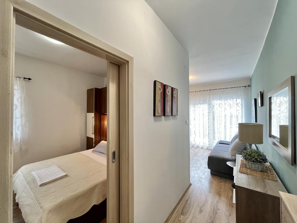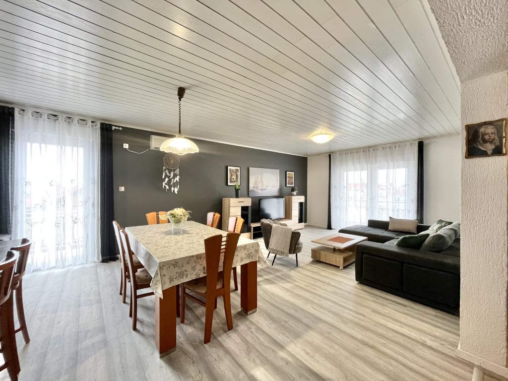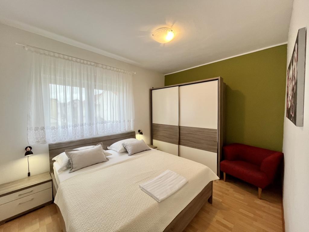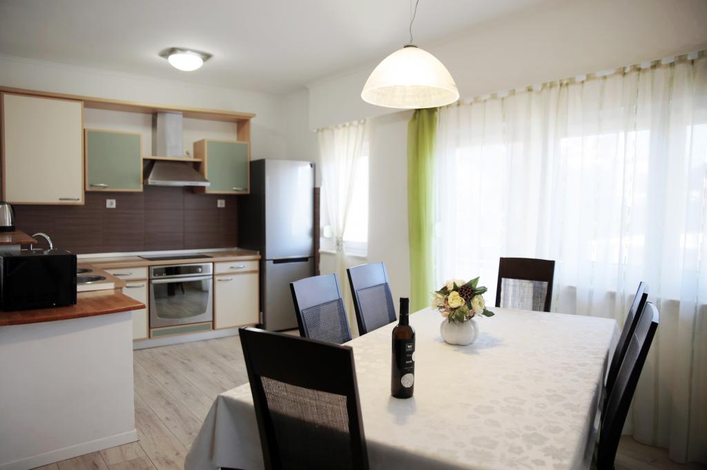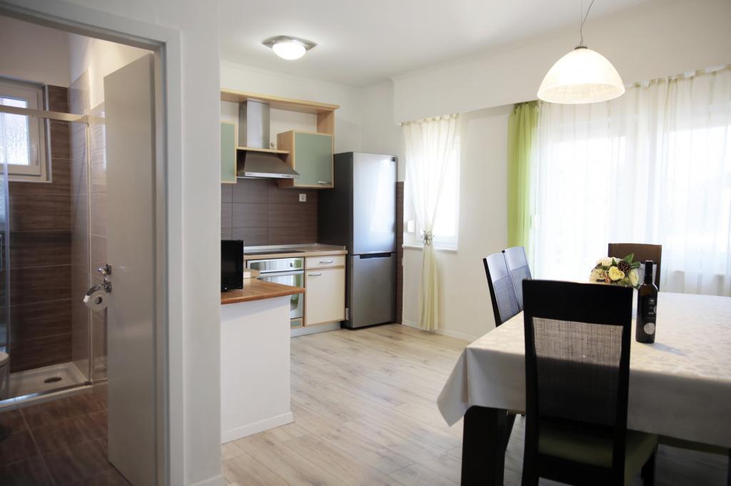 teljesen és korszerűen felszerelt apartmanok Vodice csendes részén, az épület 300 méterre a strandtól, 10 perc sétára a központtól, minden apartmanhoz ingyenes parkolás, ingyenes WIFI