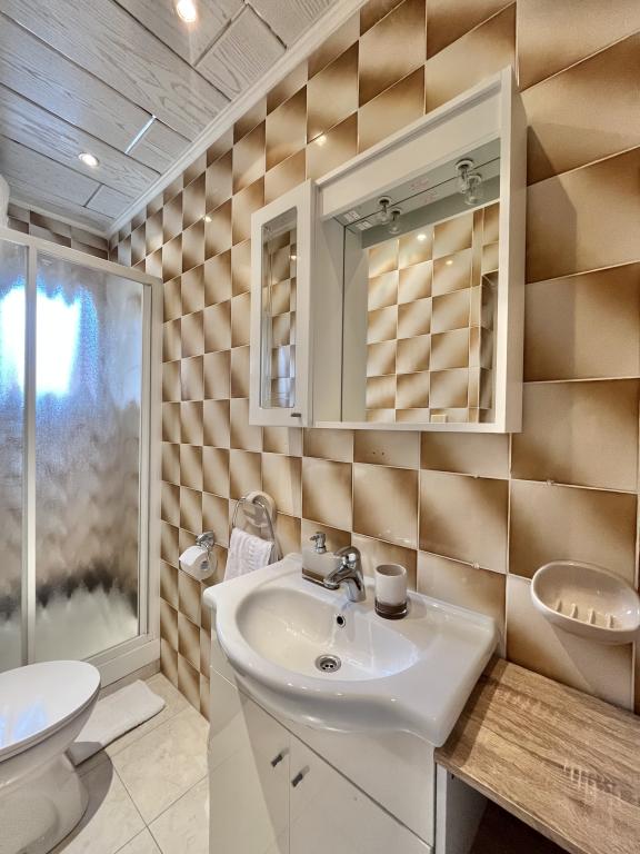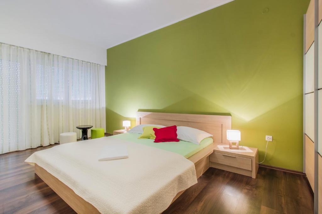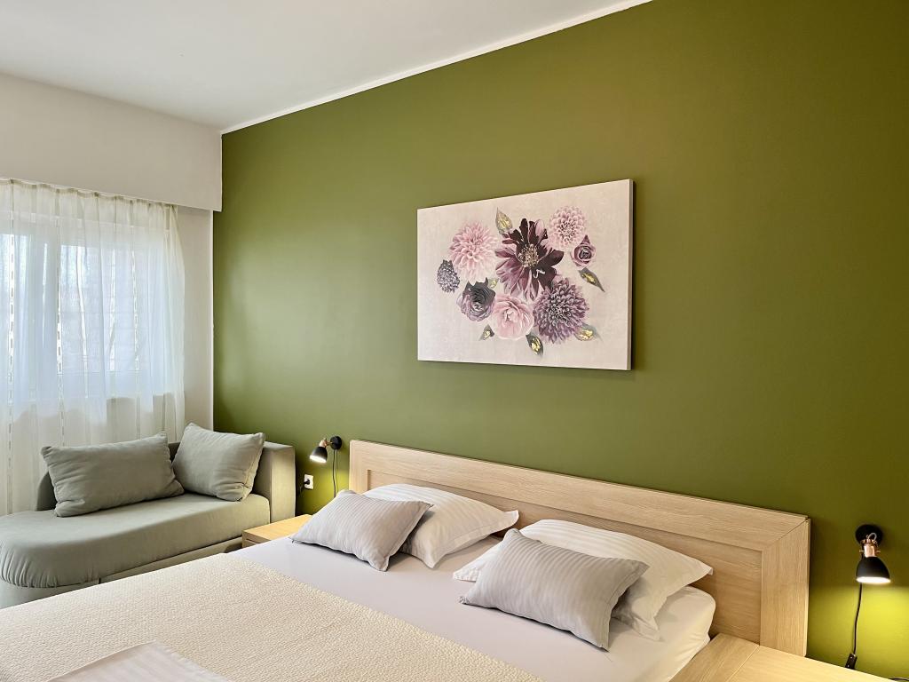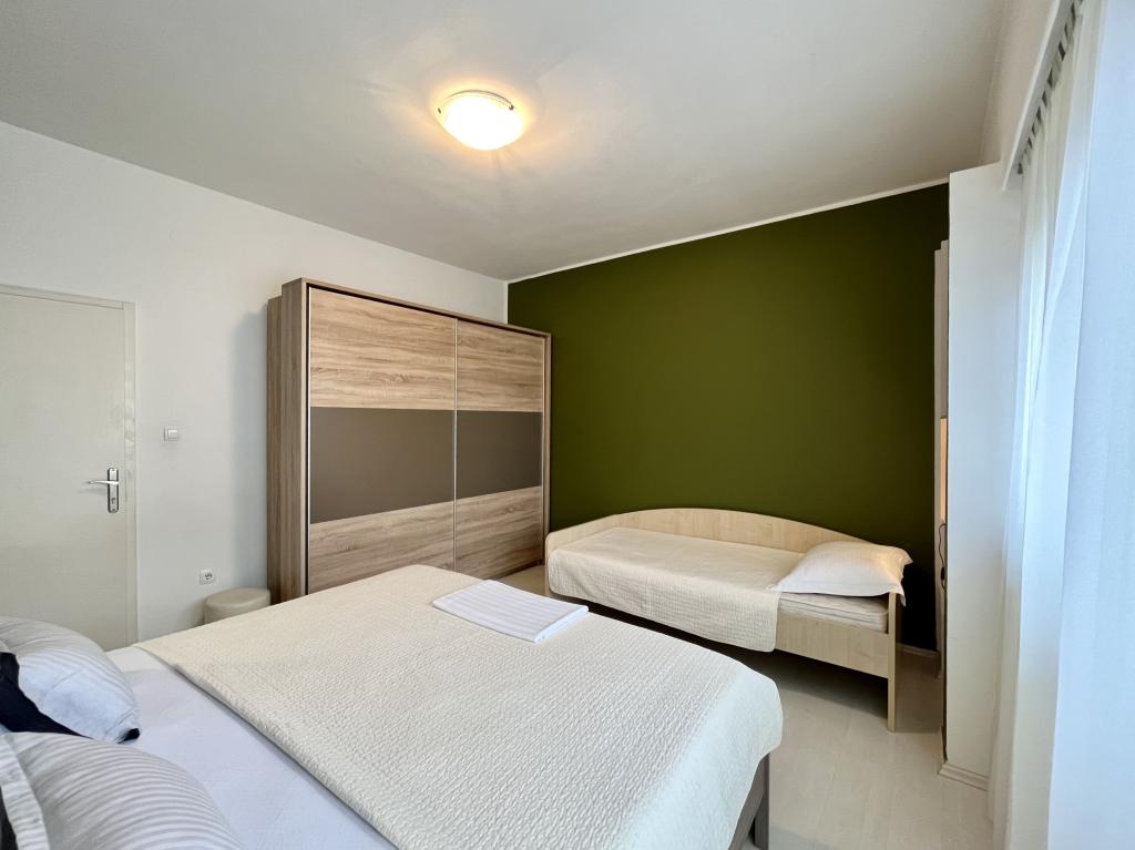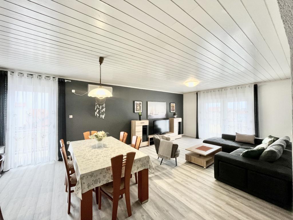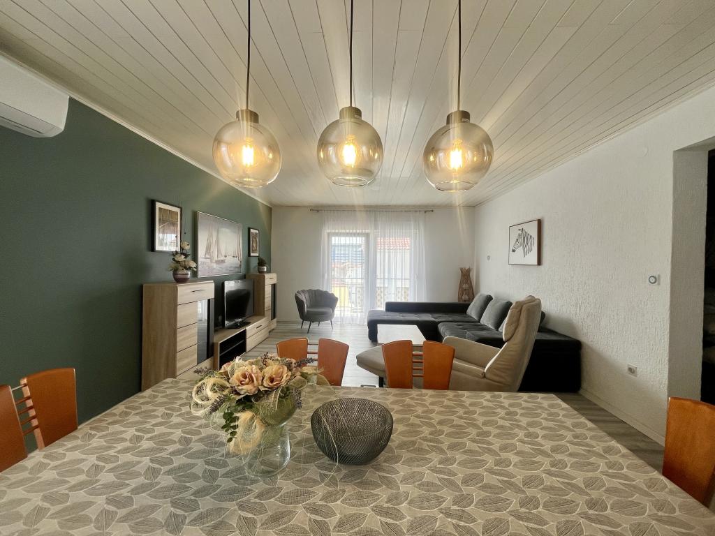 teljesen és korszerűen felszerelt apartmanok Vodice csendes részén, az épület 300 méterre a strandtól, 10 perc sétára a központtól, minden apartmanhoz ingyenes parkolás, ingyenes WIFI