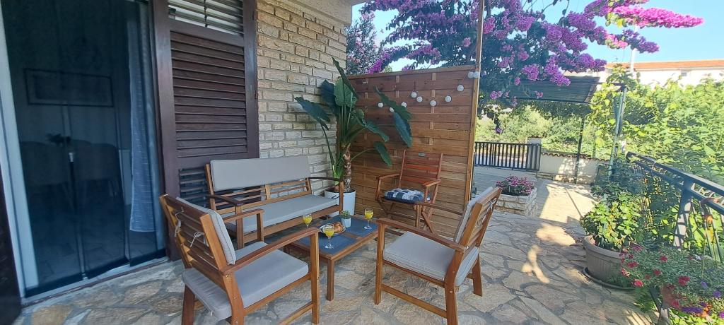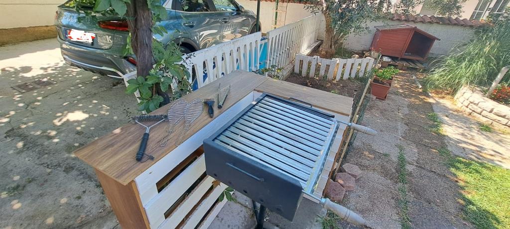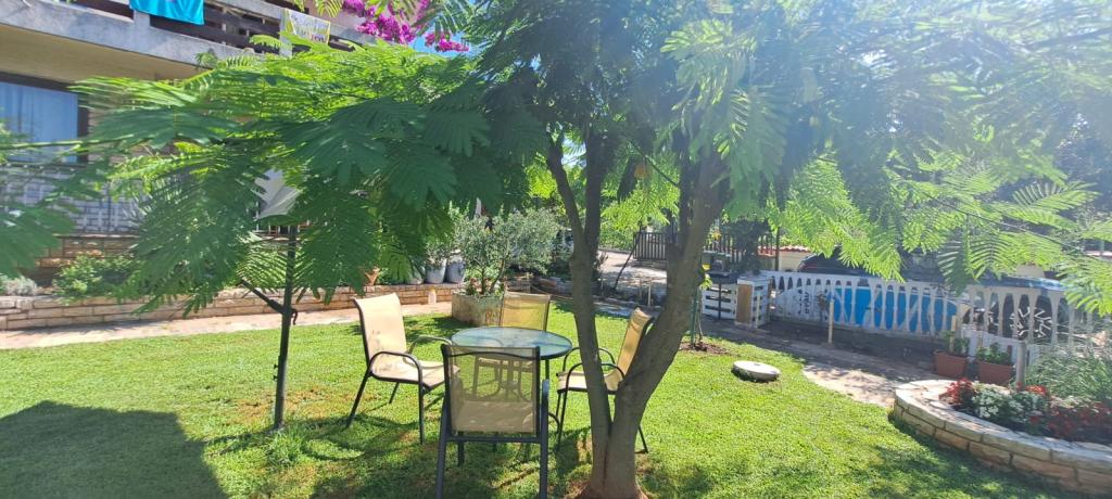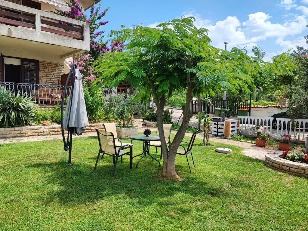 Három teljesen berendezett apartmanok találhatók egy családi házban egy nagyon csendes helyen, nagy kert és udvar, parkoló és grill. Minden apartman légkondicionált. A modern felszerelt (légkondicionálás, internet, DVD, műholdas TV). A strand is 3 perc séta, és a központ 10 perc. Bízunk benne, hogy látni.