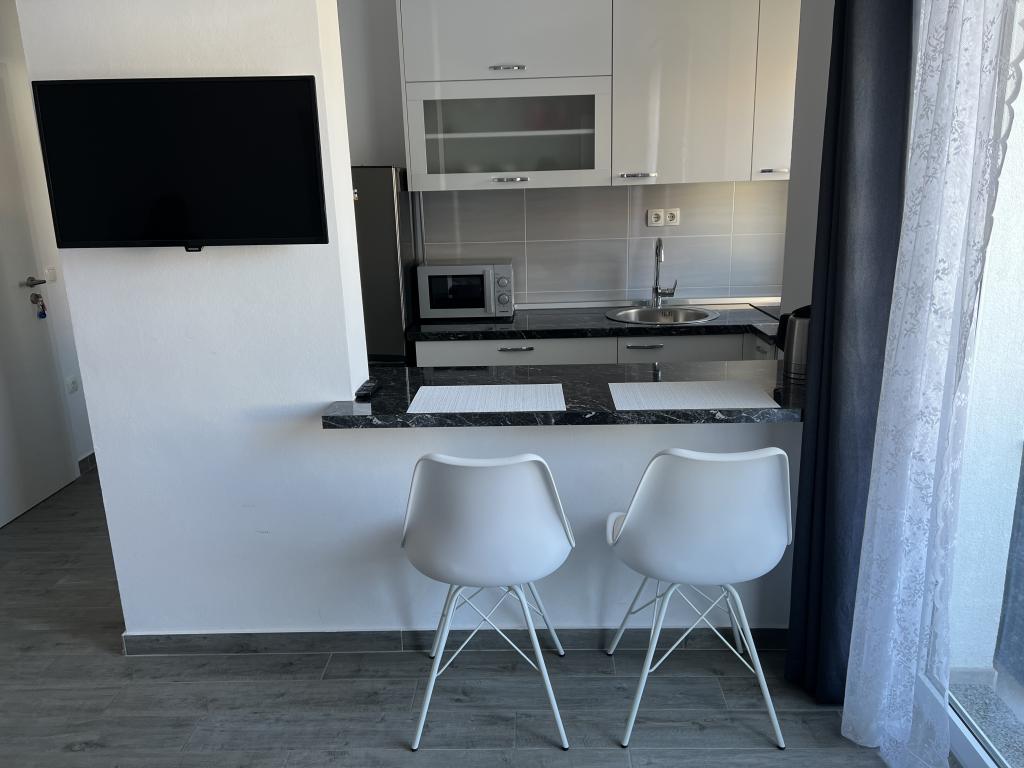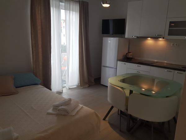 A lakás tökéletes egy 2+1 fős család számára. A hálószobában egy nagy ágy, a konyhasarokban pedig egy kanapé található. Minden a leírásnak megfelelően van. A konyha és a fürdőszoba otthonosan felszerelt. A főbérlőnő nagyon barátságos. Ő és a lánya gondoskodnak az apartmanokról, biztosítva, hogy azok tiszták és tökéletesen fel legyenek készítve az új bérlők fogadására. Az apartmanunkhoz egy kis erkély is tartozott székekkel. Tökéletes reggelihez és kávézáshoz. A környék csendes, közel van a strandhoz és egy pékséghez, ahol finom zsemléket és szelet pizzát árulnak. Nagyon ajánlom, különösen mivel ez a második alkalom, hogy itt szálltam meg.