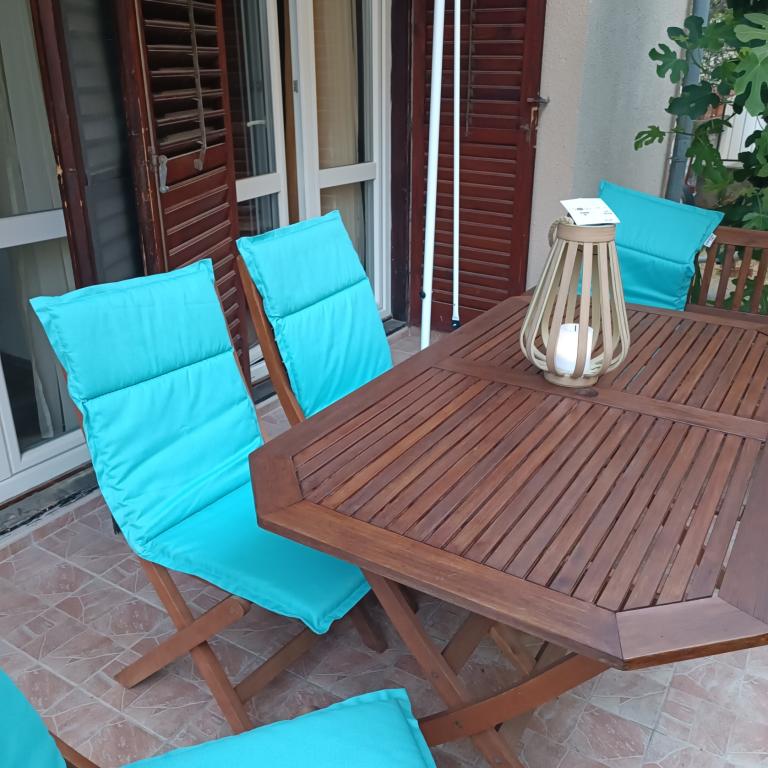 Az apartmanok a város egy csendes részén találhatók. Minden apartmanhoz tartozik egy nagy terasz a földszinten, és rengeteg védelmet nyújt a nap ellen a zöld növényzetnek és a védő napellenzőnek köszönhetően, amellyel szabályozhatja az árnyékot vagy a nap mennyiségét. Akadálymentesített, minden apartmanhoz 65 (m2) + 15 (m2) terasz, korlátlan internet, műholdas TV, légkondicionáló, kültéri grill, télen központi fűtés tartozik. a/ Tomija/ mini piacra.