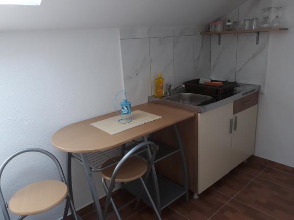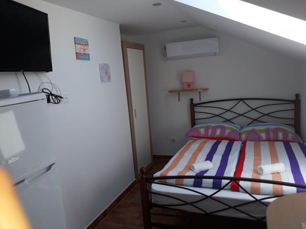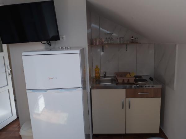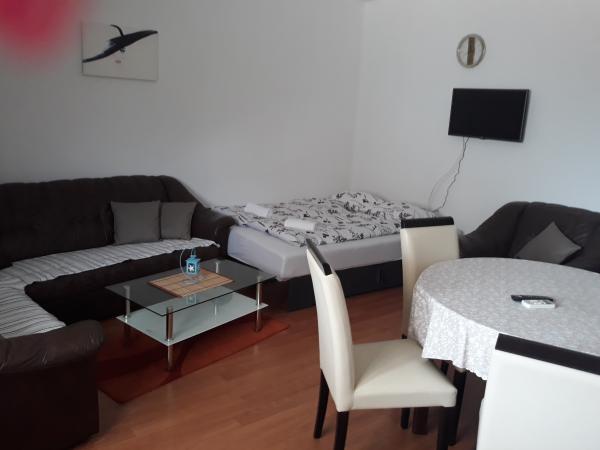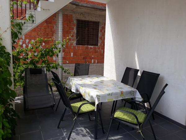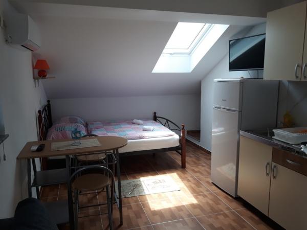 Új építésű apartmanjaink vannak Vodicében vonzó helyen, a létesítményben 3 db Stúdió apartman található, melyek mindegyike korszerűen felszerelt konyhával, fürdőszobával, franciaággyal, TV-vel... wifi és klíma az apartmanokban. .. a konyhák mindennel felszereltek, ami a használathoz szükséges.... . törölköző és ágynemű.... minden apartmanhoz tartozik őrzött parkoló az épület mellett.... az apartmanokhoz van egy napernyő is, amit a strandra is ki lehet vinni.... Az apartmanok az első emeleten találhatók, ahol van egy nagy terasz napernyőkkel.... A földszinten található egy 4 személyes apartman, melyhez nagy gyönyörű terasz tartozik, , , hálószoba, nappali két pótággyal, konyha mindennel felszerelt, fürdőszoba mosógéppel... Az apartmanok 500 méterre van a strandtól, bolt 400 méterre... éttermek 450 méterre....