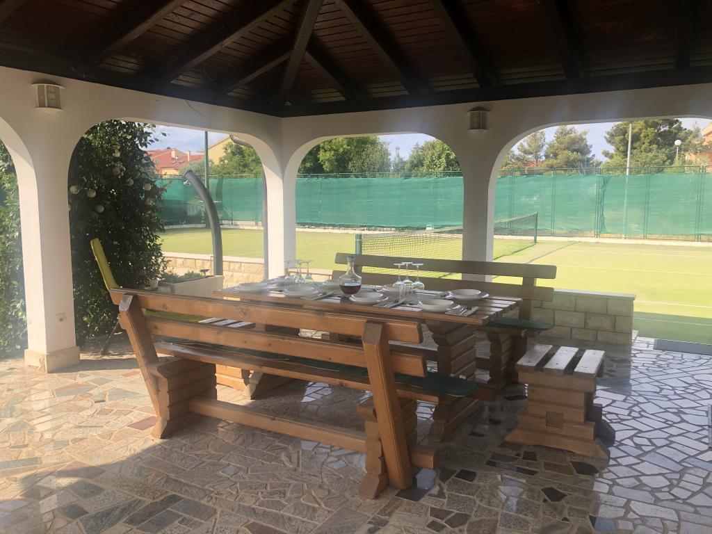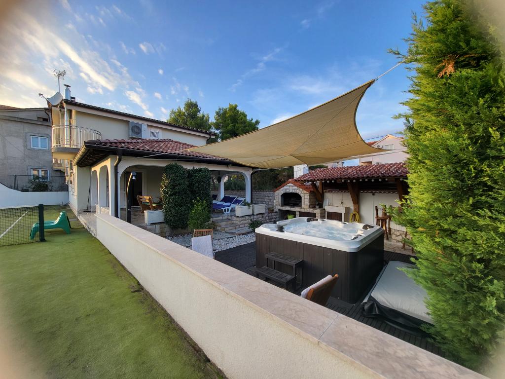 Az egész ház csak neked! Családok paradicsoma! Üdvözöljük a Villa Melosa-ban! Kényelmes nyaraló Vodicében saját teniszpályával. A házban maximum 10 vendég szállásolható el. 5 hálószobával, 3 fürdőszobával, konyhával, nappalival és egy tágas terasszal rendelkezik, ahol pihenhet és grillezhet, valamint egy 5 fős szabadtéri jacuzzi. A ház légkondicionált. Az ingatlanhoz 3 parkolóhely áll rendelkezésre, melyek közül kettő fedett garázsos. Az egész ingatlan be van kerítve, így biztos lehet benne, hogy a gyerekek nem mennek ki az úttestre, és gondtalanul játszhatnak a tágas udvaron.