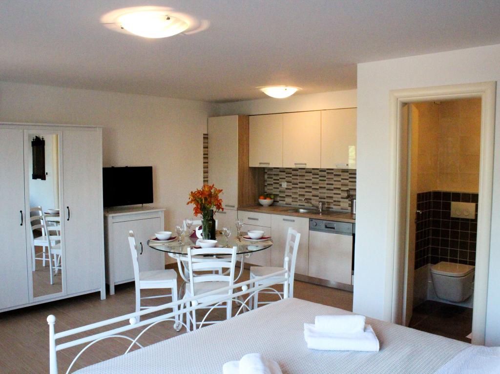 A kényelmes és modern apartmanok egy dombon találhatóak, csendes környéken, csodálatos kilátással a tengerre és a városra. A létesítmény 800 m-re található a központtól. A legközelebbi strand és kikötő 5 perces sétával elérhető. A kavicsos strand 15 percre van.