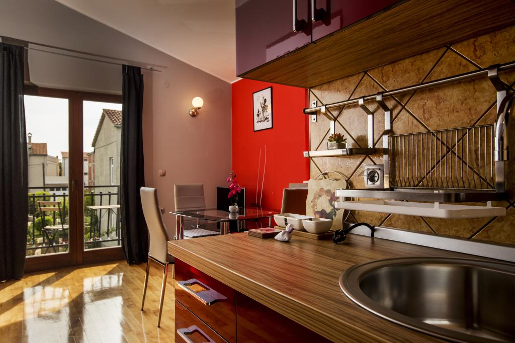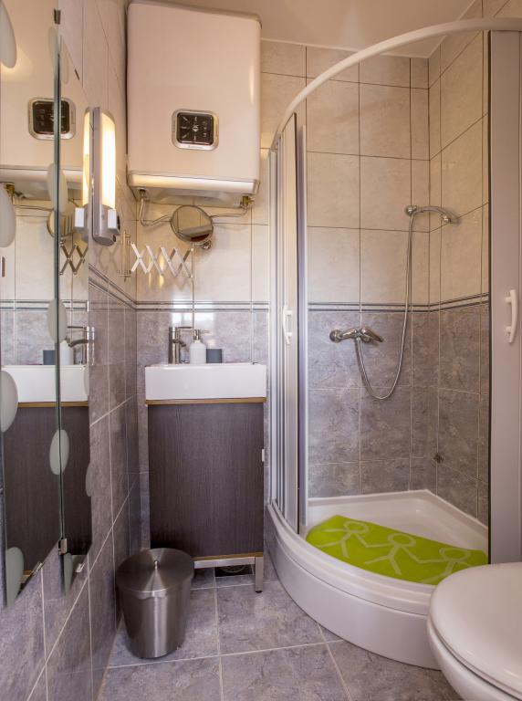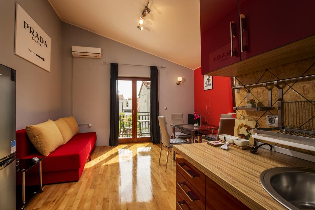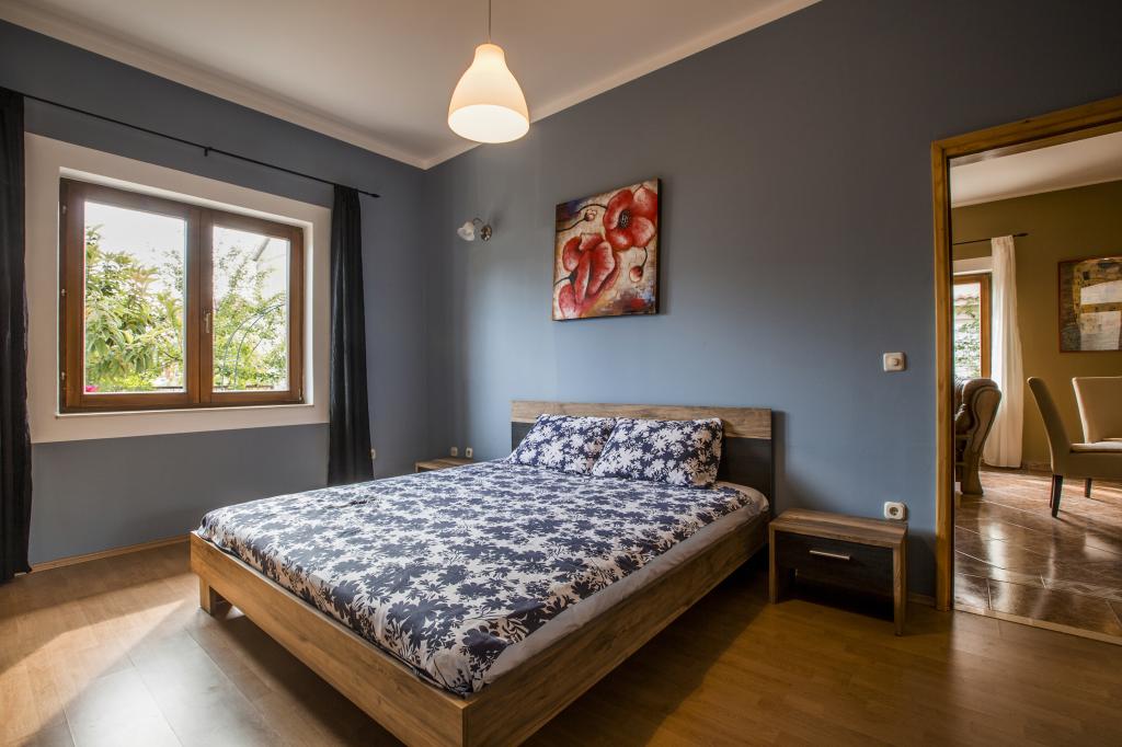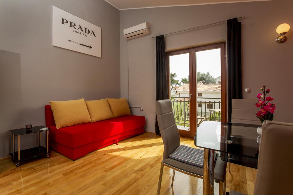 Teljesen és modernül felszerelt apartmanok 80 méterre a tengertől. Az A1-es apartman (78 m2) két hálószobával, konyhával, fürdőszobával és egy nagy nappalival rendelkezik étkezővel és pótággyal. Akár 6 fő befogadására is alkalmas, légkondicionált, és a vendégek rendelkezésére áll műholdas TV, WiFi internet, kávéfőző, mikrohullámú sütő, kenyérpirító és széf. Az A2-es apartman (41 m2) egy hálószobával és egy konyhasarokkal, étkezőasztallal és pótággyal ellátott helyiséggel rendelkezik. Akár 4 fő részére is alkalmas, légkondicionált, két erkéllyel rendelkezik, a vendégek rendelkezésére áll műholdas TV, WiFi internet, kávéfőző, mikrohullámú sütő, kenyérpirító és széf. Az A3 stúdió maximum 2 fő elszállásolására alkalmas, erkéllyel, légkondicionálóval rendelkezik, és a vendégek rendelkezésére áll műholdas TV, WiFi internet, kávéfőző, mikrohullámú sütő, kenyérpirító és széf. Akár az egész ház bérlésére is van lehetőség, amely akár 12 fő befogadására is alkalmas.
