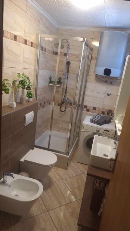 Az Apartment Galešić újonnan és szépen berendezett. Mindent tartalmaz, amire szüksége van a pihenéshez és a nyaraláshoz (légkondicionáló, mosógép, TV, internet, mikrohullámú sütő, törölköző ...). Érkezéskor bor és fagylalt fogadott minket a gyerekeknek - rendkívüli figyelem a gyerekek nagy örömére. Az apartman 50 méterre található egy pékségtől és 100 méterre egy helyi üzlettől. 5 perces sétára található a Zablaće strandtól - a strand az egész faluban kiterjed - a csendes tengerparti élvezethez. Az apartman 5 percre van a Brodarica strandtól autóval - itt játszótér, fitnesz, étterem, fagylalt, nyugágyak és napernyők, fitnesz található. Ez a strand autóval megközelíthető, és a parkolás ingyenes. 10 perc alatt elérhető autóval a nagyobb üzletekbe - pl. Lidl, Plodine, Kaufland, valamint Šibenik központja. Az apartman 5 perces autóútra fekszik a Solaris komplexumtól, ahol egy kis fizetős Dalmatia vízi park is található. Goran és felesége nagyon figyelmes és gondoskodó házigazdák, akik vigyáznak a vendégre, valamint a szemre és a kézre a lakás részleteiért. Ajánlom!