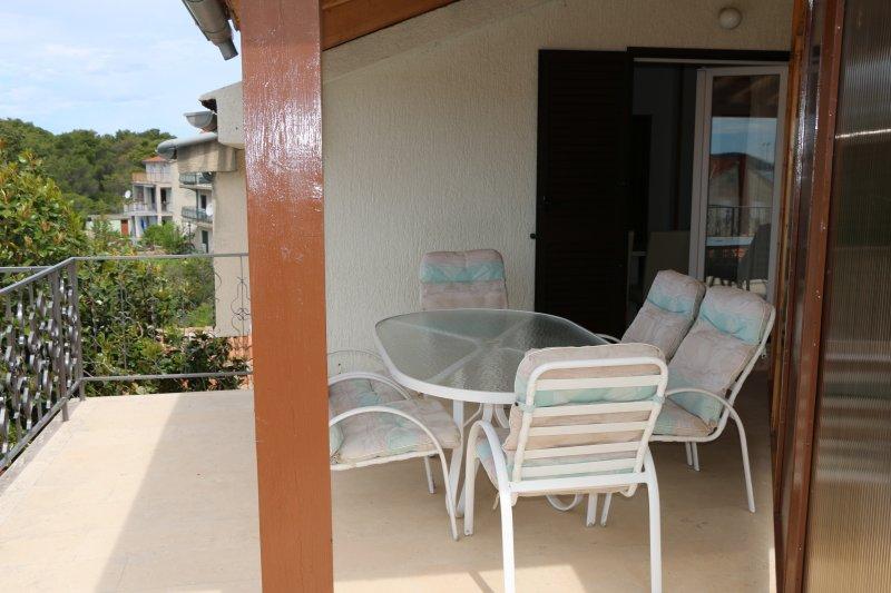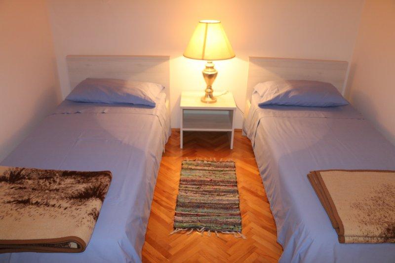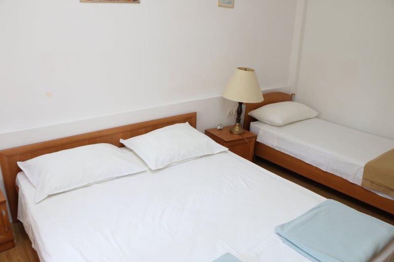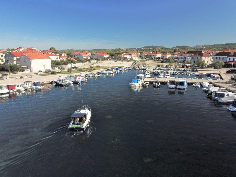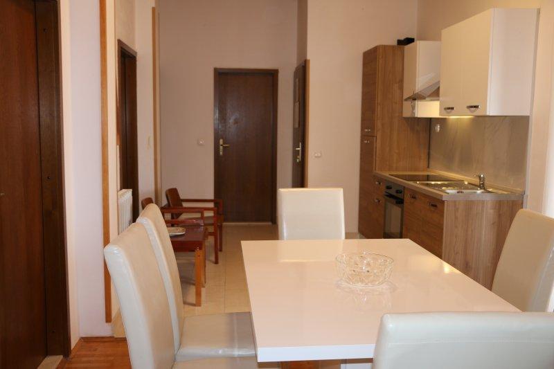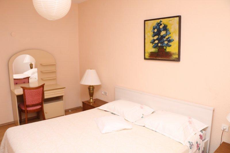 Teljesen felszerelt apartmanok Zablac központjában, 50 méterre a tengertől és 200 méterre a strandtól, a cement strand déli oldalán, a régi fenyvesben, és a kavicsos (természetes) strand nyugati oldalán. Tíz perces sétával választják el az apartmanokat a SOLARIS Hotel komplexumtól, és ugyanazon 2 kilométeres körzetben találhatók a kiválóan berendezett strandok, ahol különféle sportolási és kikapcsolódási lehetőségek, valamint nappali és éjszakai gasztronómiai és szórakozási lehetőségek állnak rendelkezésre. Ebből a néhány szóból arra a következtetésre jutva, hogy minden korosztály kielégítheti igényeit és élvezheti a nyaralást apartmanjainkban. Minden apartman teljesen fel van szerelve a kényelmes tartózkodáshoz szükséges összes készlettel. Parkolóhely a ház előtt.