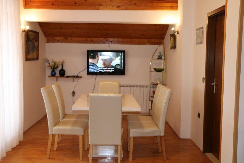 Hello család Grgas Tucilo és meleg ajánlás mindazoknak, akik úgy döntenek, hogy ebben a csodálatos családban maradnak. Olyan észrevétlenek, és mindig ott vannak az Ön számára. Az apartman tiszta, tágas konyha mindennel, amire szüksége van, és ennél több. Azok számára, akik azt akarják, hogy mit kérnek tőlük, hogy ne tegyenek hamis ígéreteket, ez a helyes cím. Mindaz, amit Ivica úrral egyetértettünk, az utolsó részletig tartott. Nagyobb cégek számára van egy kocsma, ahol a kandalló épül, és ugyanolyan minden, amire szüksége van a lakástól elválasztott konyhai edényekből, hogy az öröm és az élvezet hosszú ideig tarthasson anélkül, hogy bárkit akadályozna. Még egyszer köszönöm és köszönöm. Látni jövő nyáron. Zdenko Vlatka Aco és Nikola
