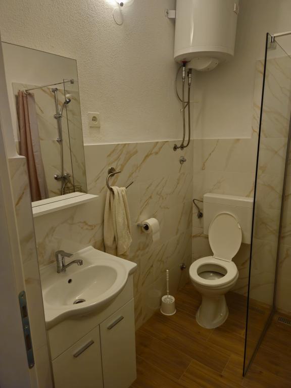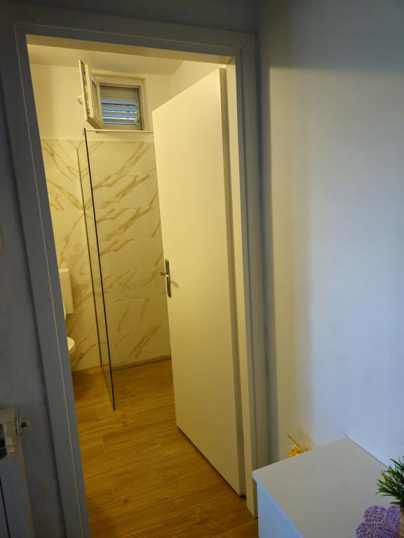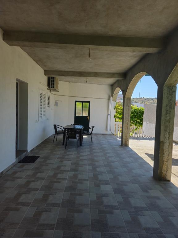 Apartman nagy terasszal. Kellemes légkör, nyugodt környezetben. A központ és a strand közelsége 5 perces sétával elérhető.