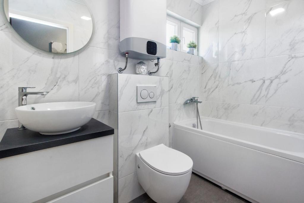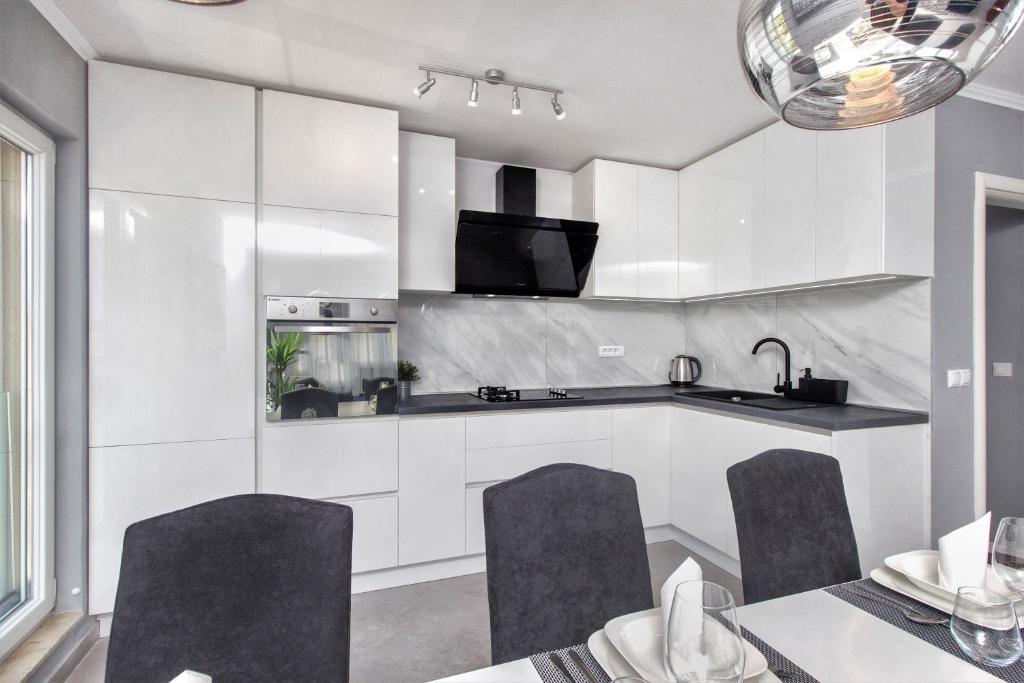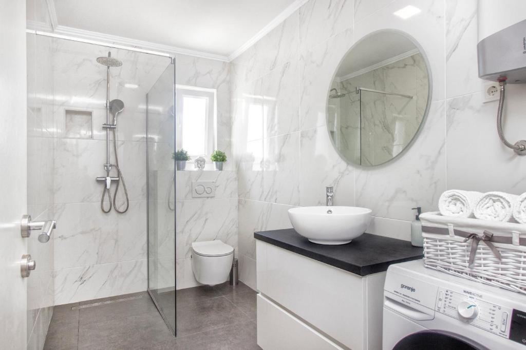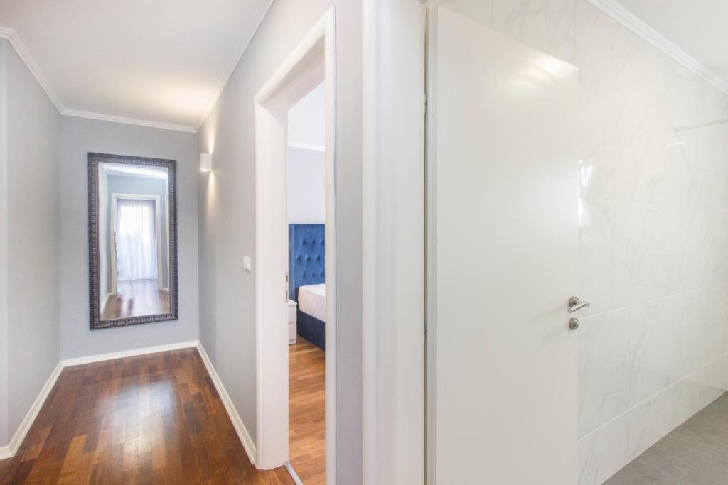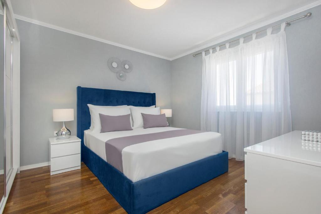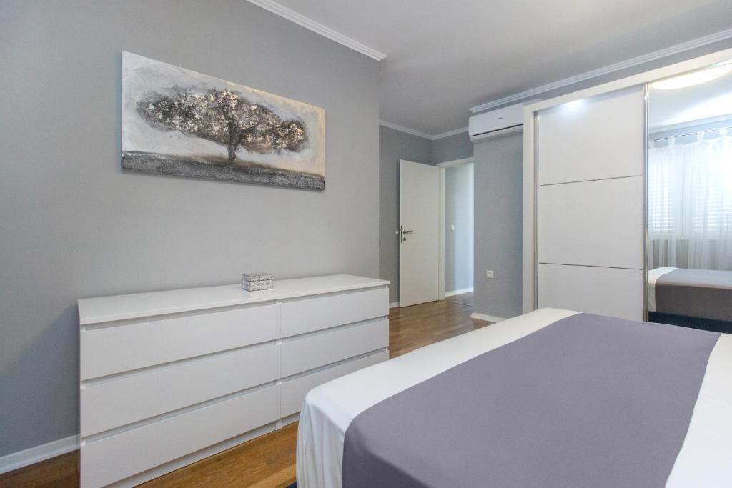 Új penthouse lakás, első alkalommal kiadó. A lakás alapterülete 95 m2, az épület utolsó emelete. Az apartmanban található: 2 nagy hálószoba, 2 fürdőszoba, teljesen felszerelt konyha, sütő, mosógép, mosogatógép, 3 légkondicionáló, internet, műholdas TV, 160 cm-es okos TV. Az apartmanban maximum 5 fő tartózkodhat. Az apartman néhány percnyi sétára van a kavicsos strandtól és a Jasenovo autótábortól. Biztonságos saját parkoló. Üdvözöljük!