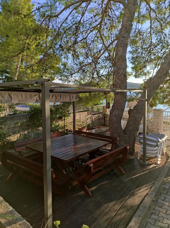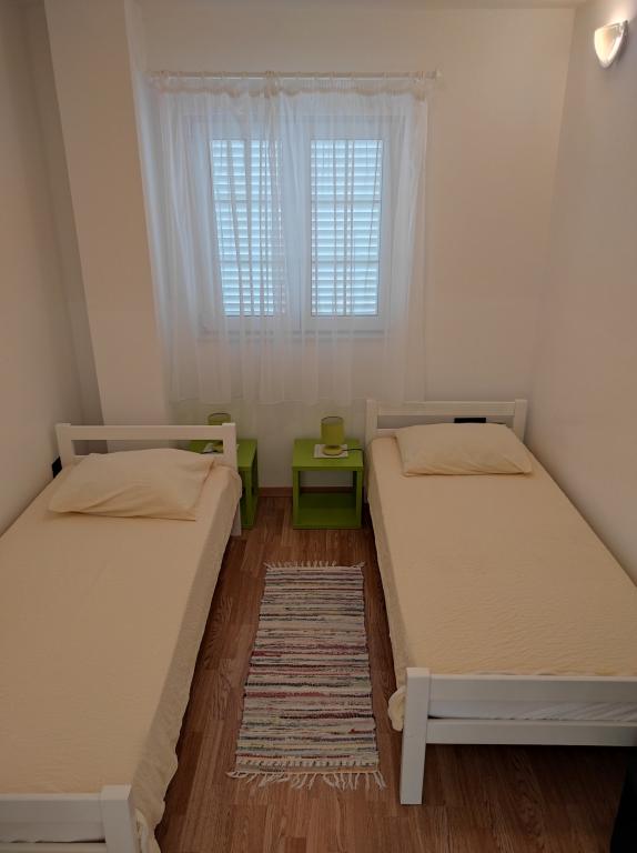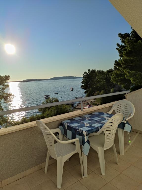 A Dradar Villa a tengertől nyíló első sorban található. Ap A10 (A6+A4) Ajánljuk Önnek nagyra becsült, kétszintes A10-es apartmanunkat. A tér a következőkből áll: Az első emeleten található egy konyha, étkező/nappali kanapéval, fürdőszoba, három hálószoba 6 ággyal, egy gardrób és egy tengerre néző erkély a ház előtt. A két emeletet egy belső lépcső köti össze. A második emeleten található egy konyha, étkező/nappali kanapéval, fürdőszoba, gardrób és két hálószoba 4 ággyal, valamint egy terasz tengerre néző kilátással. Ezenkívül garázs, további két autó számára parkolóhely, grillező, kert, kerti bútorok napellenzővel, kültéri zuhanyzó, nyugágyak és napernyők, valamint a ház előtti strand található felnőttek és gyermekek számára. Van egy helyünk csónakkikötőnek. Minden újonnan berendezett és 4-es kategóriájú **** A tartózkodás ára 40 €/fő/éj. Érkezéskor egy napi bérleti díj előlegét kell fizetni, kárbiztosítás esetén. Az összeg kijelentkezéskor visszatérítésre kerül.